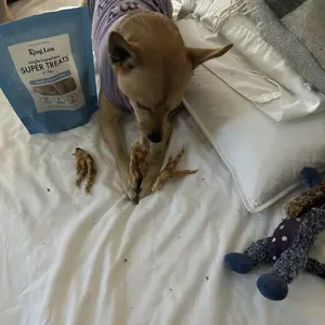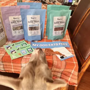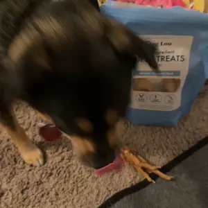 Every day I get home from work my dog looks forward to one King Lou feet treat! She gets so excited! These chicken feet have been helping her breath and keeping her teeth clean. Can’t wait for her to try other King Lou treats in the future!
