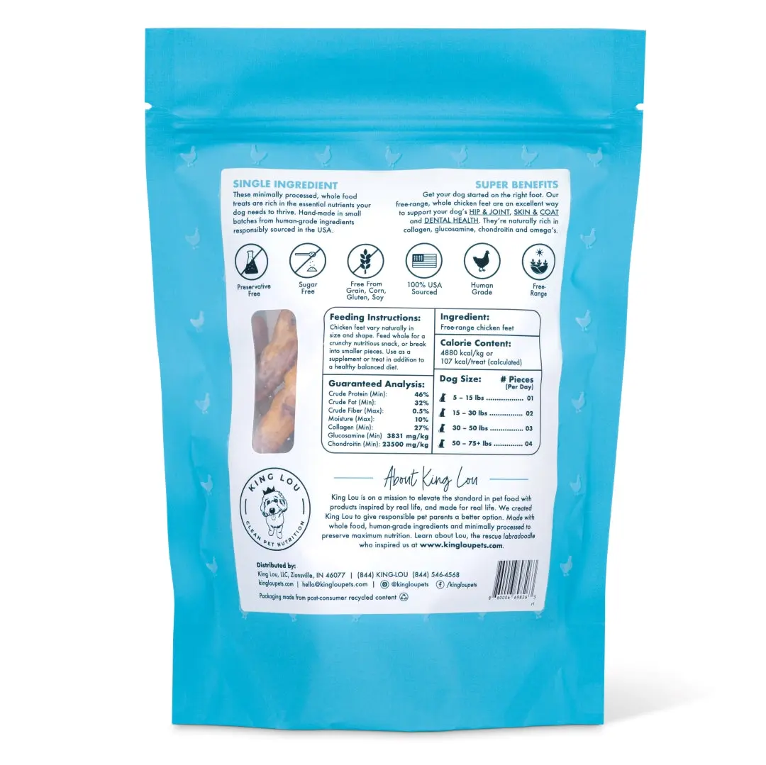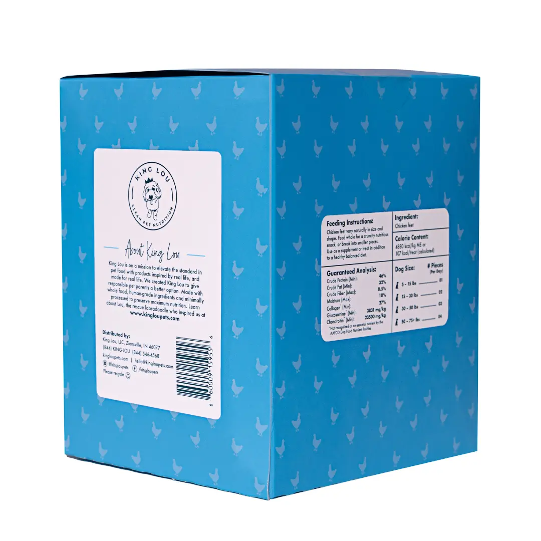 Thank you so much for the double chicken feet and adding an empty bucket So I can put my chicken feet in it to stay fresh! King Lou’s the best!! Wonderful company who cares about your pets!!