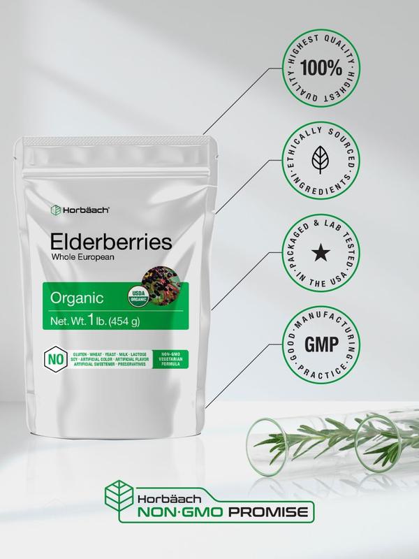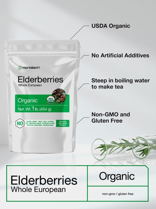 Enjoy Horbaach's European elderberries by consuming as is or steeping in boiling water to make tea. Our 1 lb bulk herb is USDA Organic and carefully manufactured to your satisfaction. Reap the benefits of this powerful superfood at an incredible value today with Horbaach!