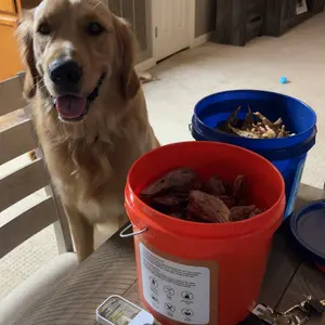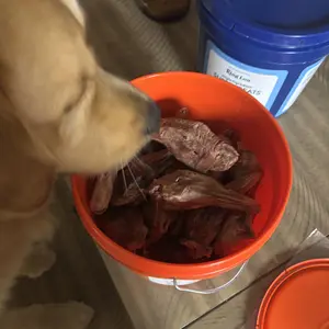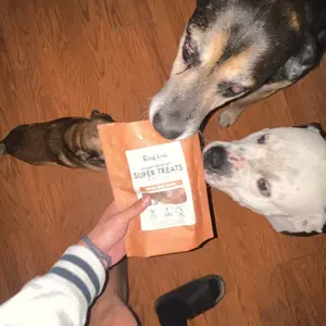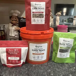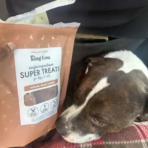 My dogs love everything they’ve tried from King Lou. Great freshness and we get a good quantity for the price. Recently they’ve had great deals and we’ve received quite a few free gifts with our orders. This order we received a free bag of chicken hearts and a bag of bone broth powder.