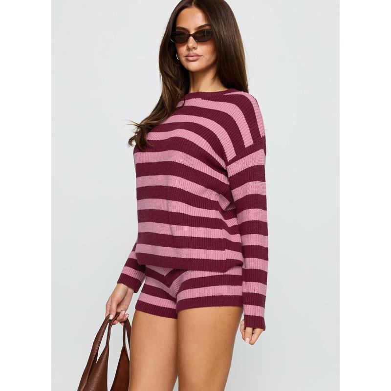 ·Knit stripe matching two-piece set