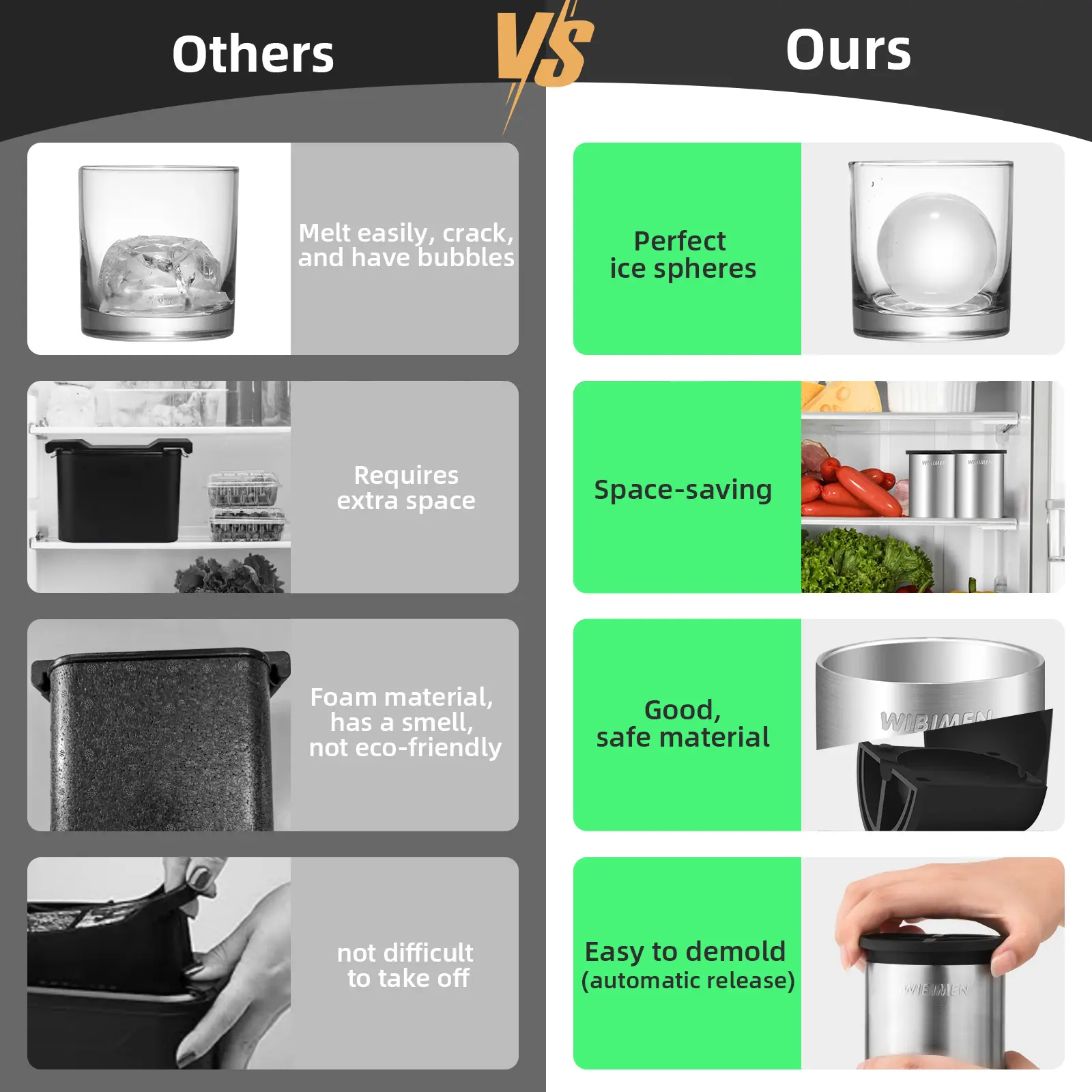 This product offers the same level of quality found in professional bars. Enjoy the convenience of having clear, cold ice at home. The WIBIMEN set is your solution for reliable ice production.
