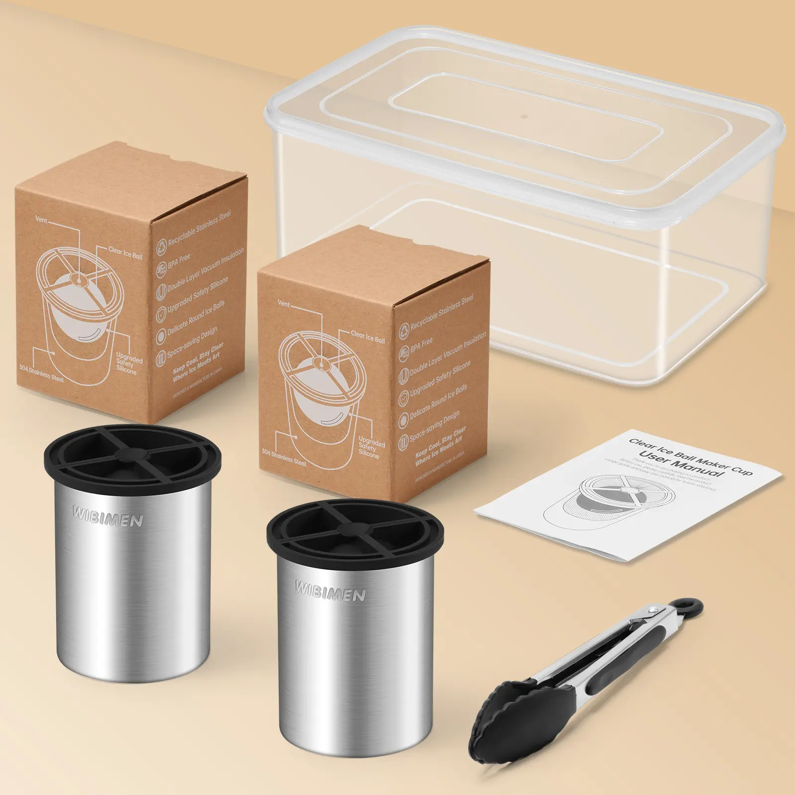 5. WIBIMEN 2 Pack Clear Ice Makers With Ice Tong & Storage Box – Bar Quality at Home