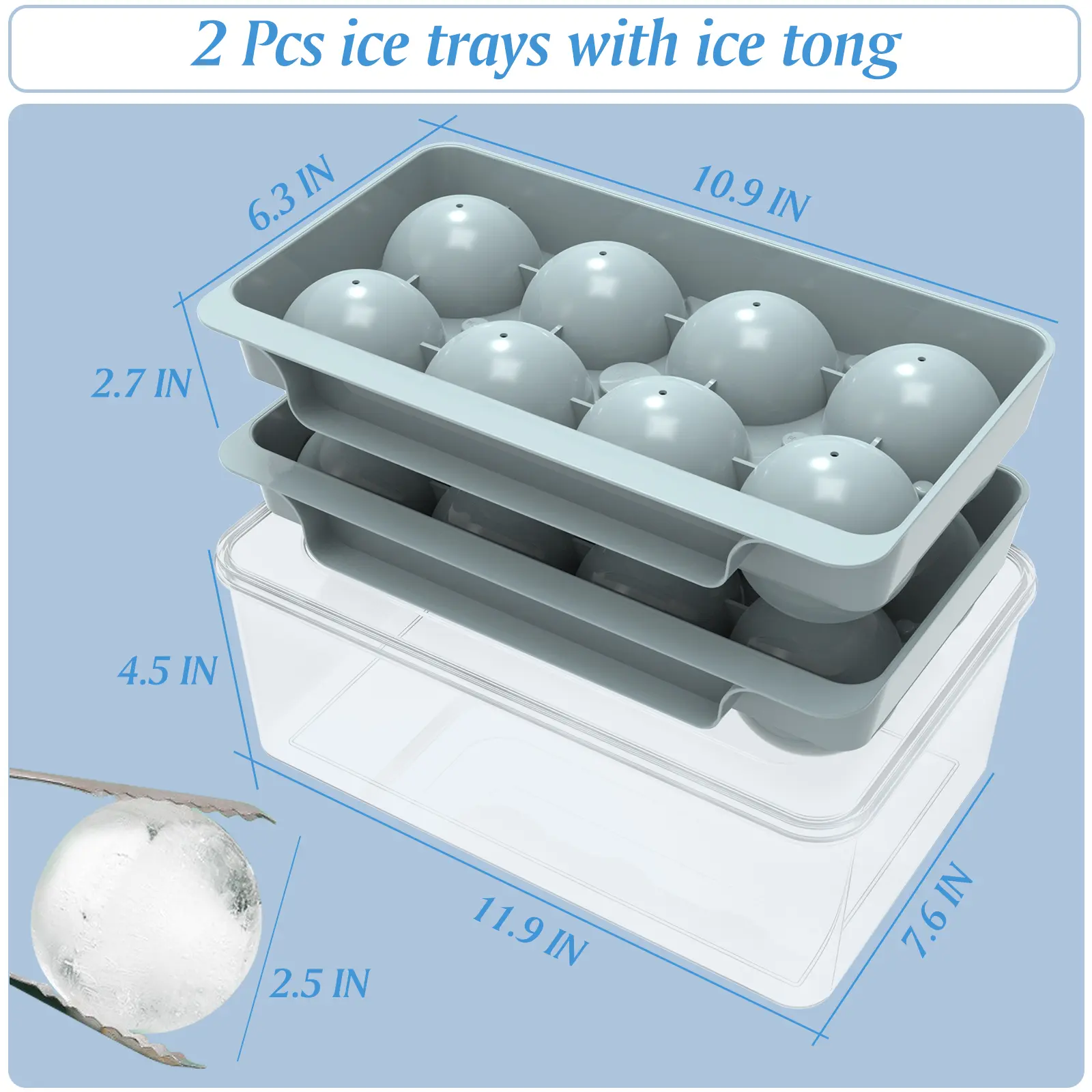5. WIBIMEN 2.5" Ice Ball Molds | 8 Balls, 2-Pack | Easy Release with Ice Box & Tongs | Ideal for Whiskey & Bourbon Containers Plastic Home Bar Accessories Blue