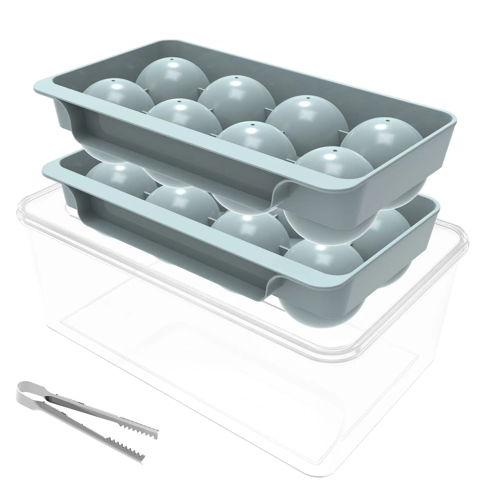 WIBIMEN 2.5" Ice Ball Molds | 8 Balls, 2-Pack | Easy Release with Ice Box & Tongs | Ideal for Whiskey & Bourbon Containers Plastic Home Bar Accessories Blue