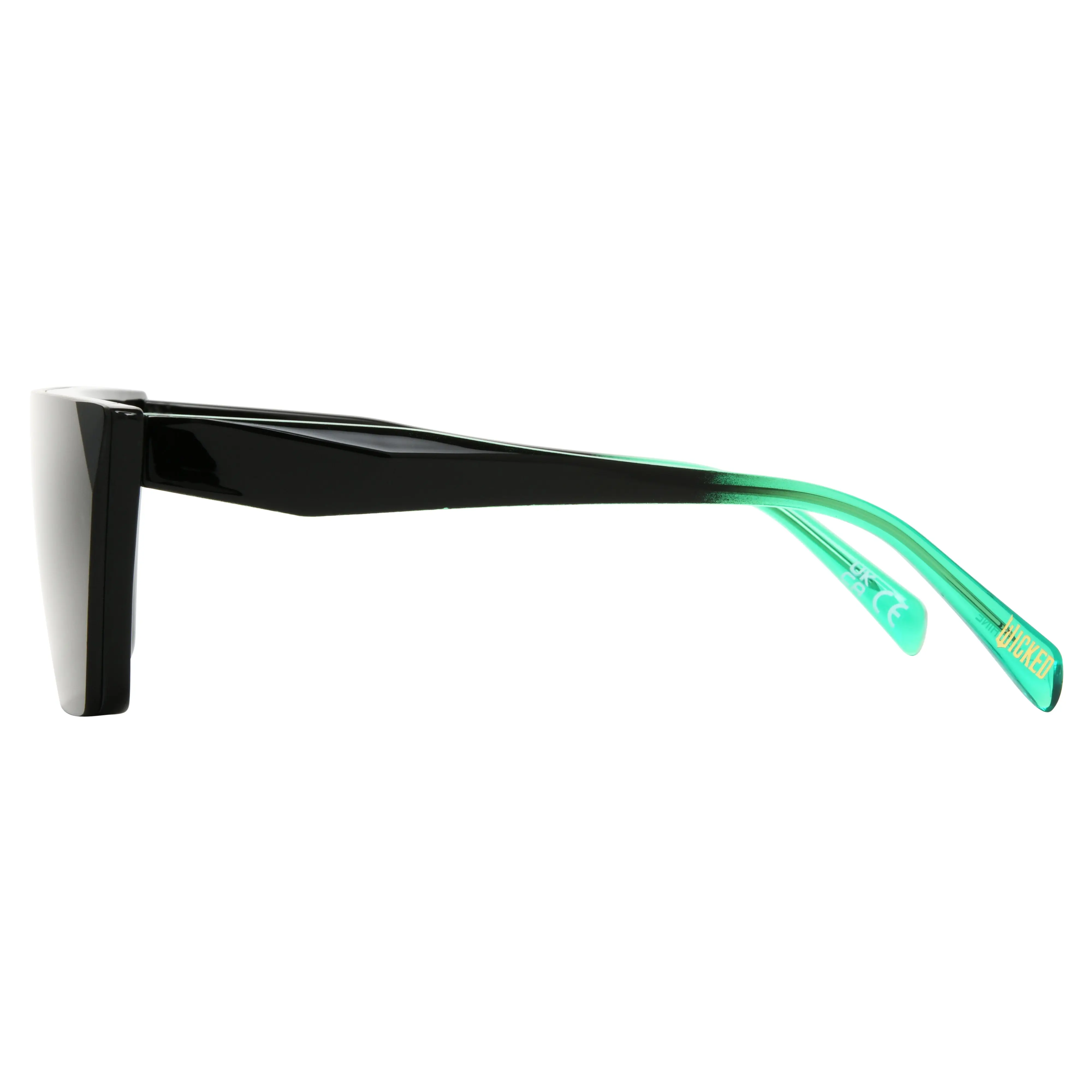Calling all wicked witches! These statement shields are inspired by the movie Wicked! Featuring vibrant black to Elphaba green temples with a custom faceted wire core and a bold geometric shield silhouette. It's giving wicked in the most wonderful way! 🌟