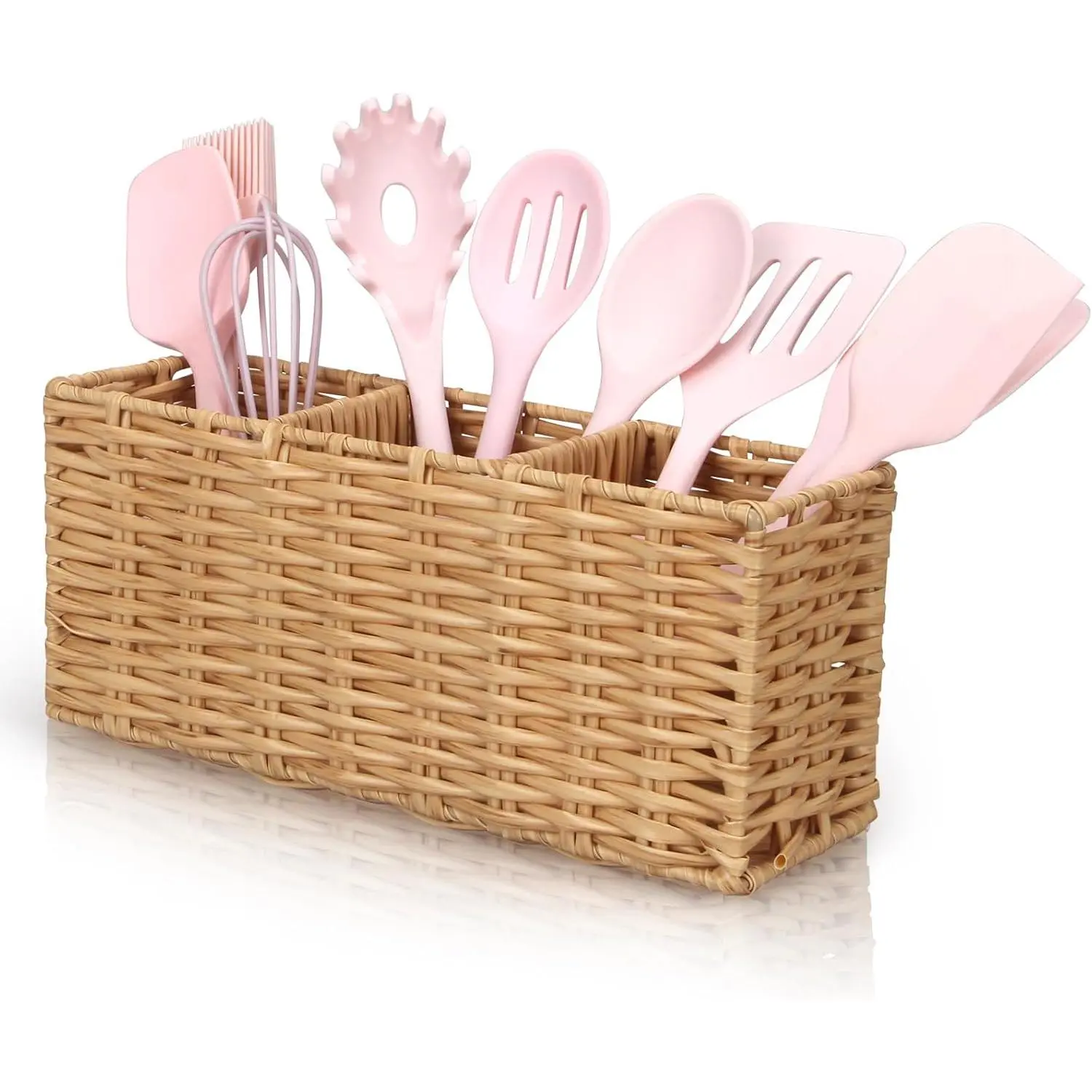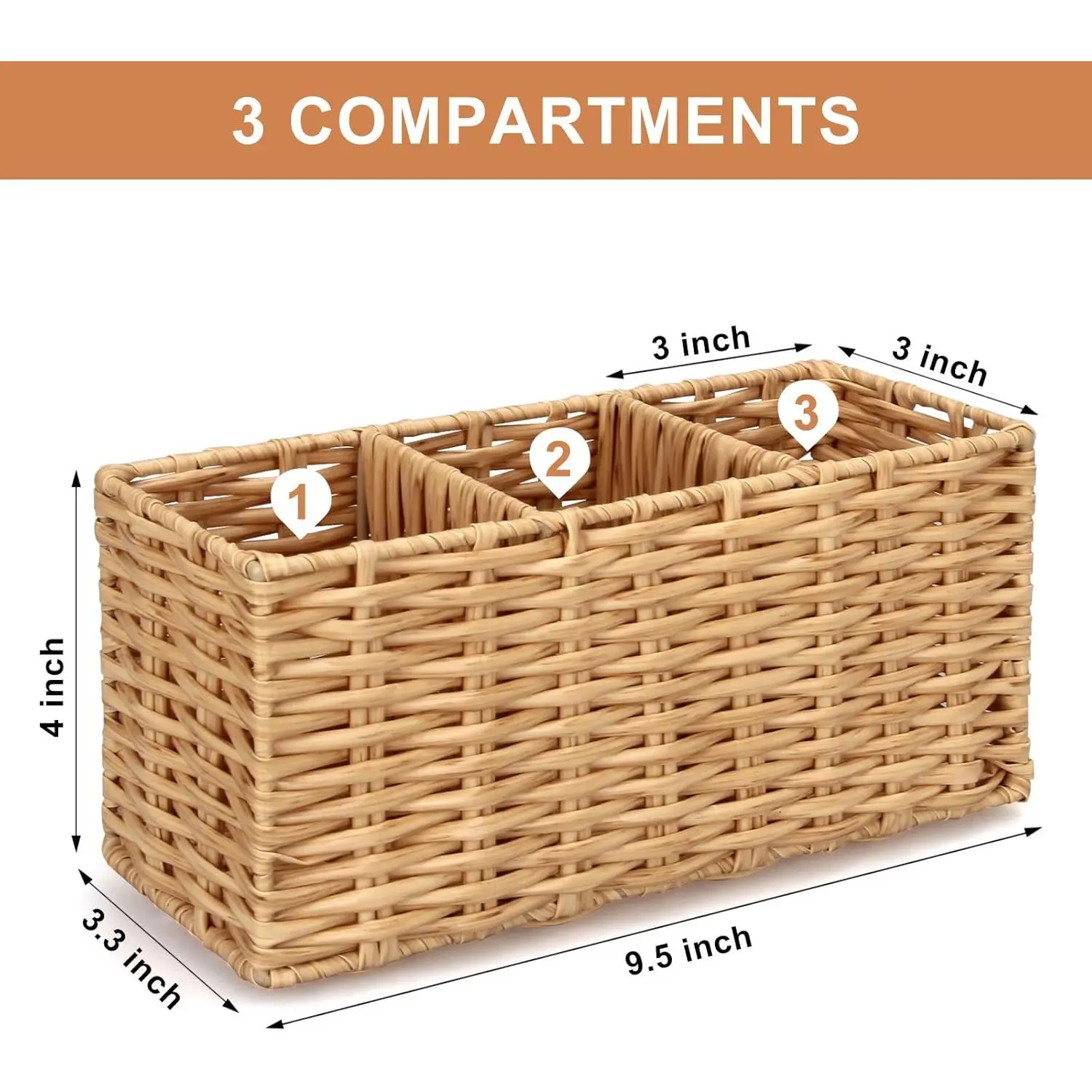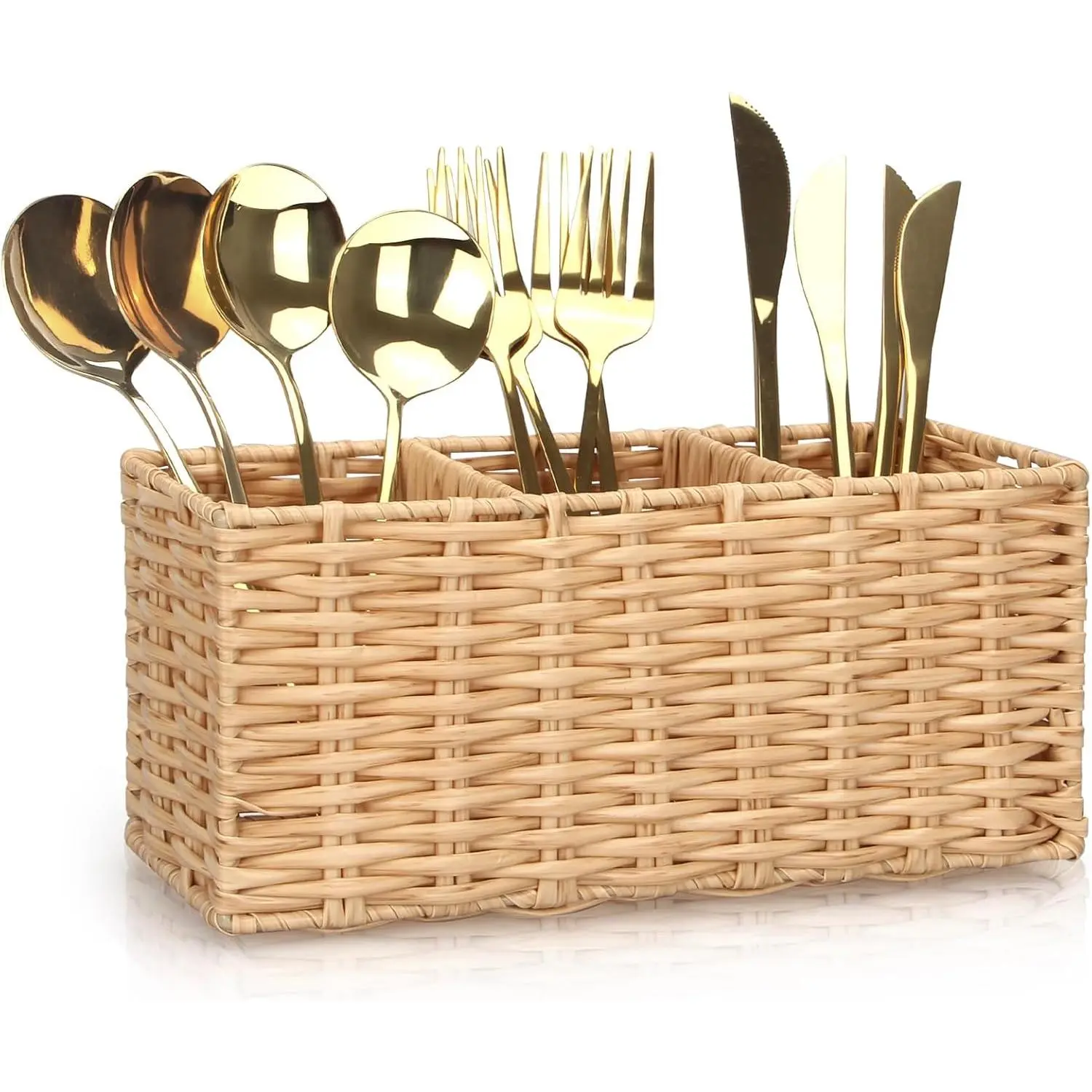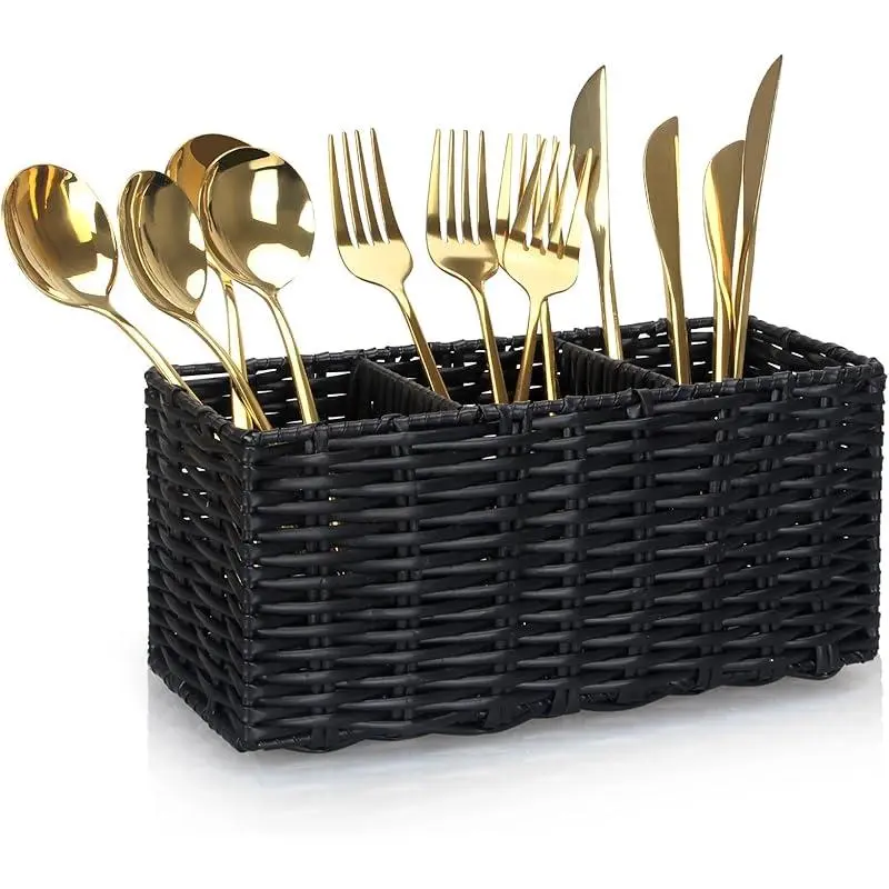 ·Best Cutlery Holder: This flatware caddy is made of high-quality plastic imitation rattan woven with a thick wire frame that is strong, durable, and not easily deformed.Strong steel metal frame to maintain shape.