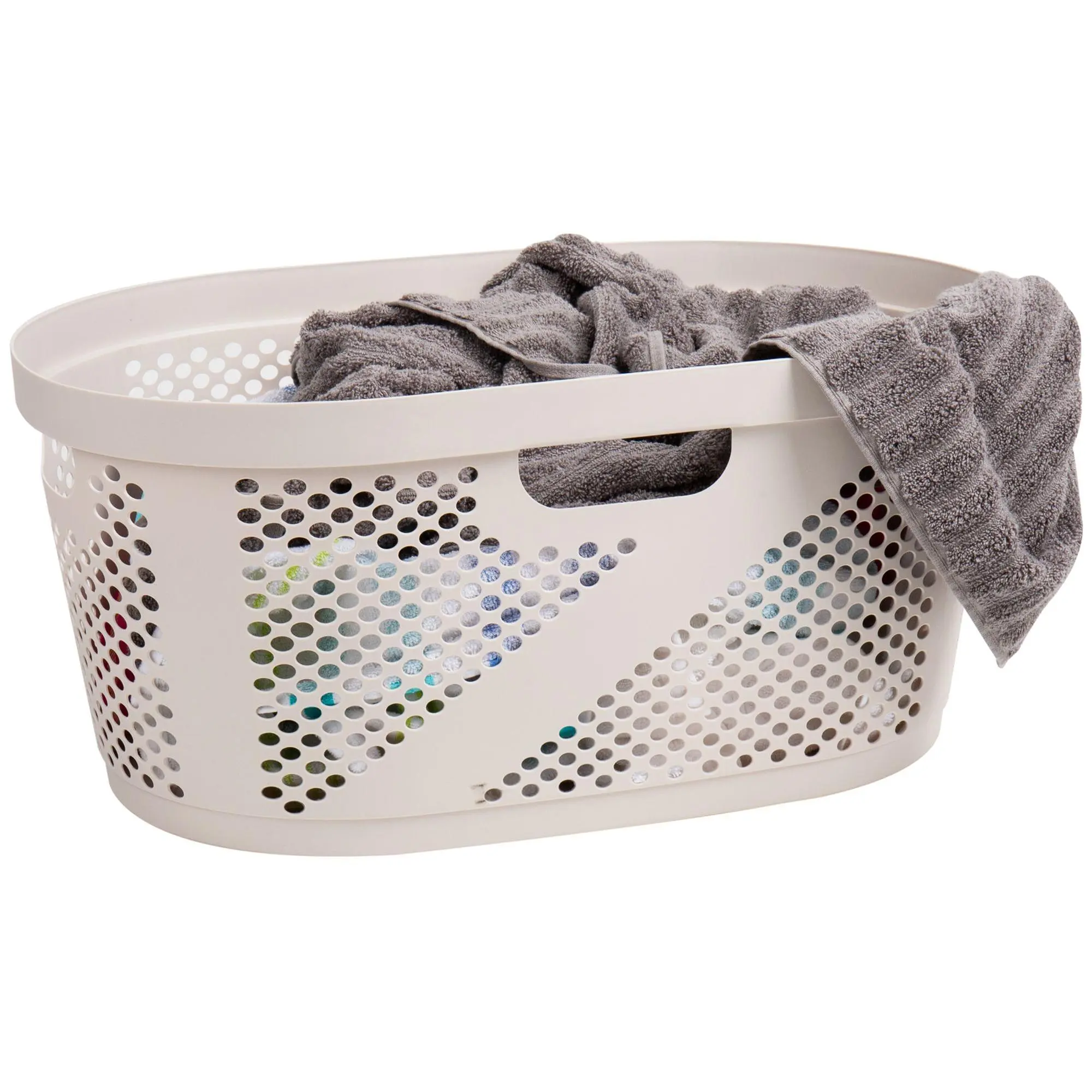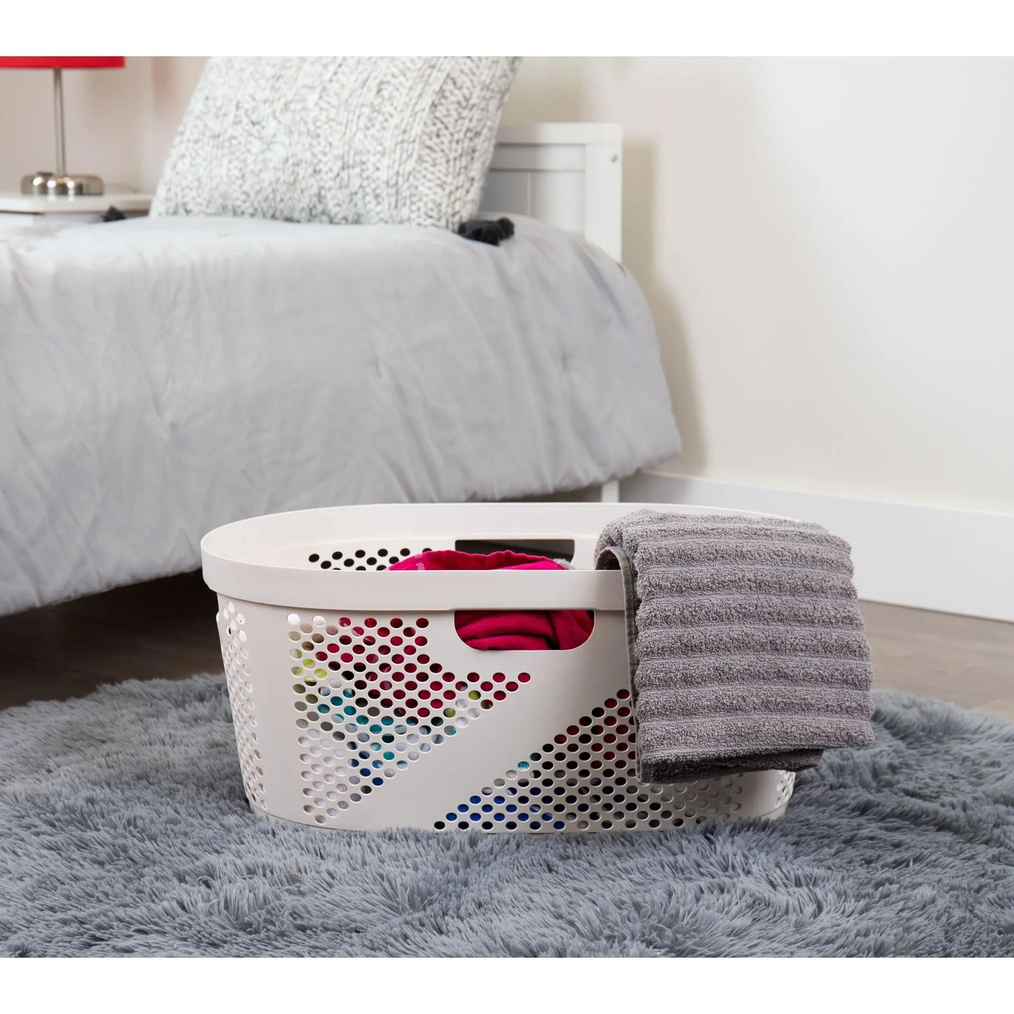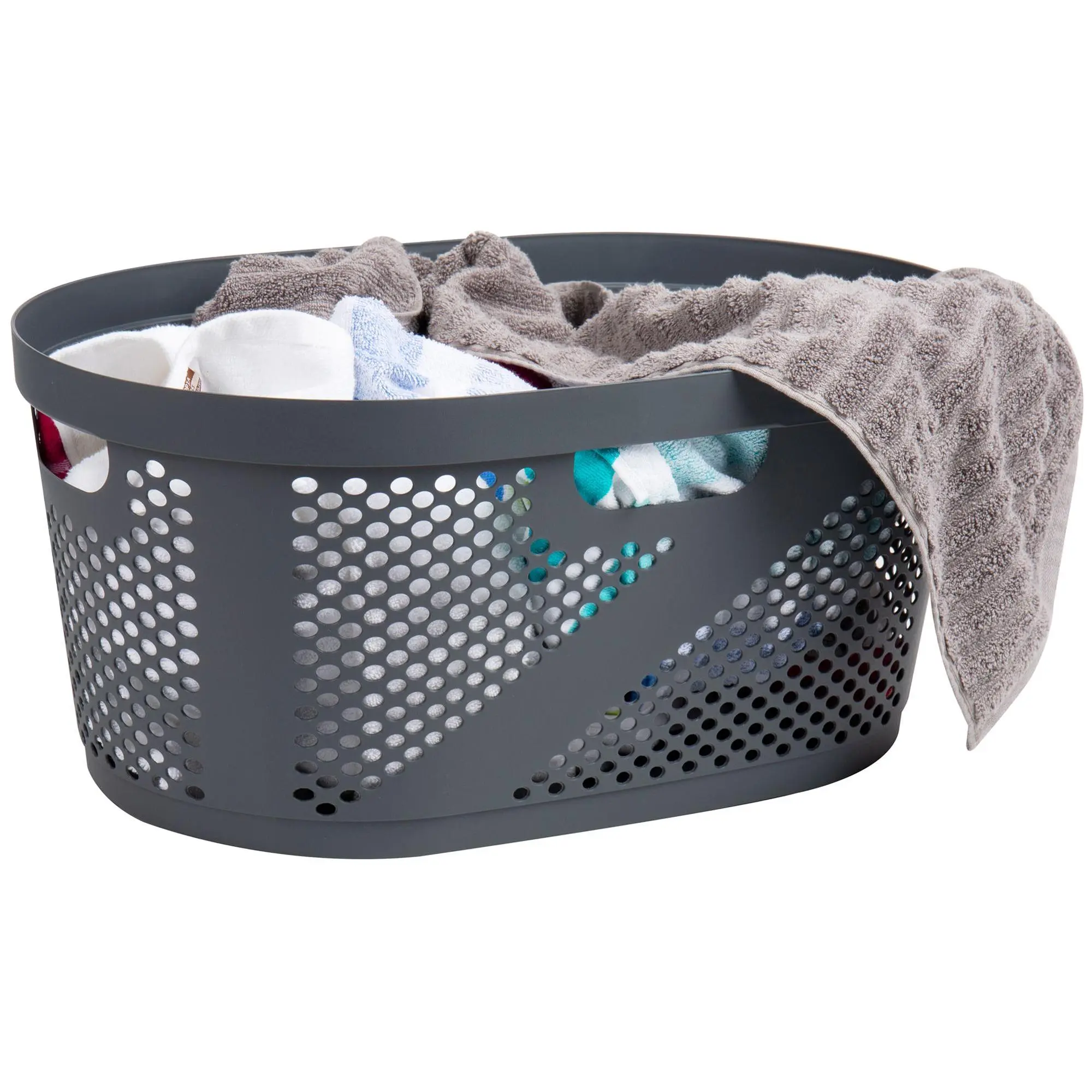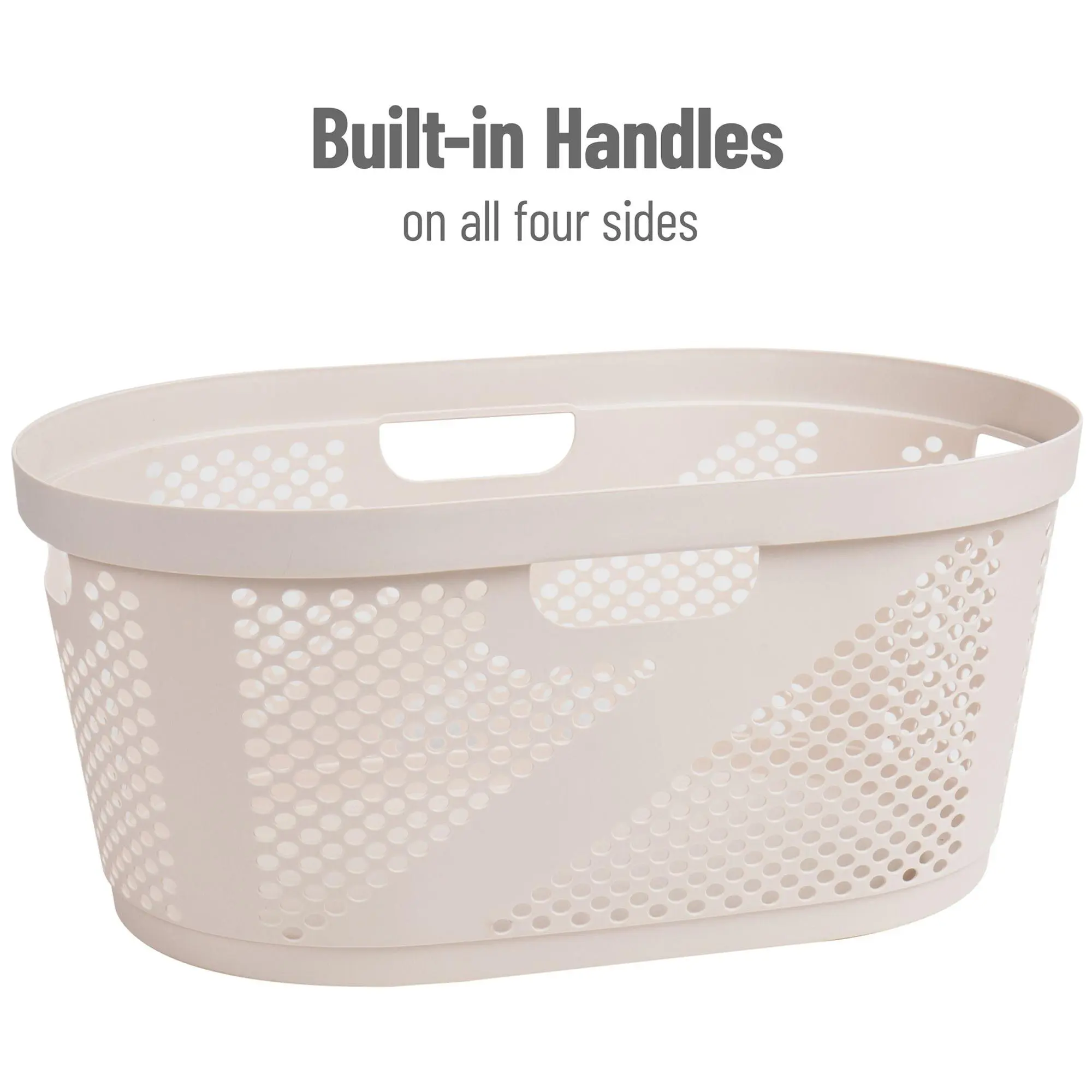 Simplify your home organization with this wicker-look laundry basket. This versatile hamper is perfect for clothes, toys, sports equipment, and more, making it an excellent addition to any room. Crafted from durable yet lightweight plastic, it features built-in handles for easy transport and a breezy design to keep items fresh. From Mind Reader.