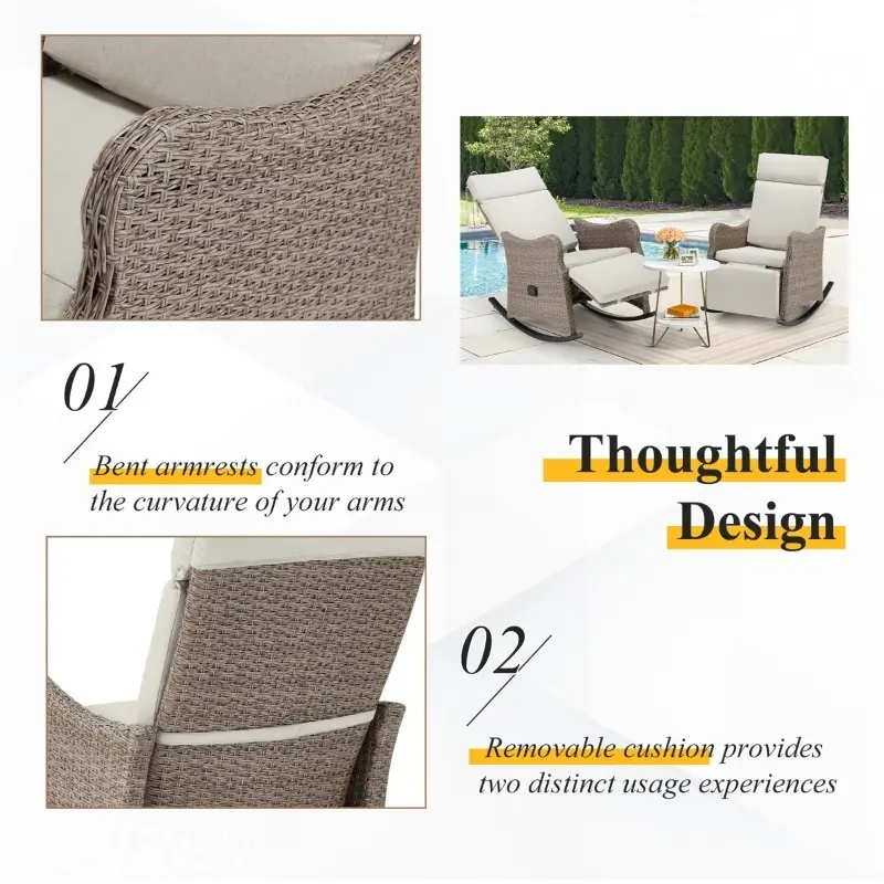 Designed with a soothing rocking function, this patio recliner chair provides a gentle back-and-forth motion that enhances relaxation, making it ideal for enjoying quiet moments on your patio, porch, or garden.