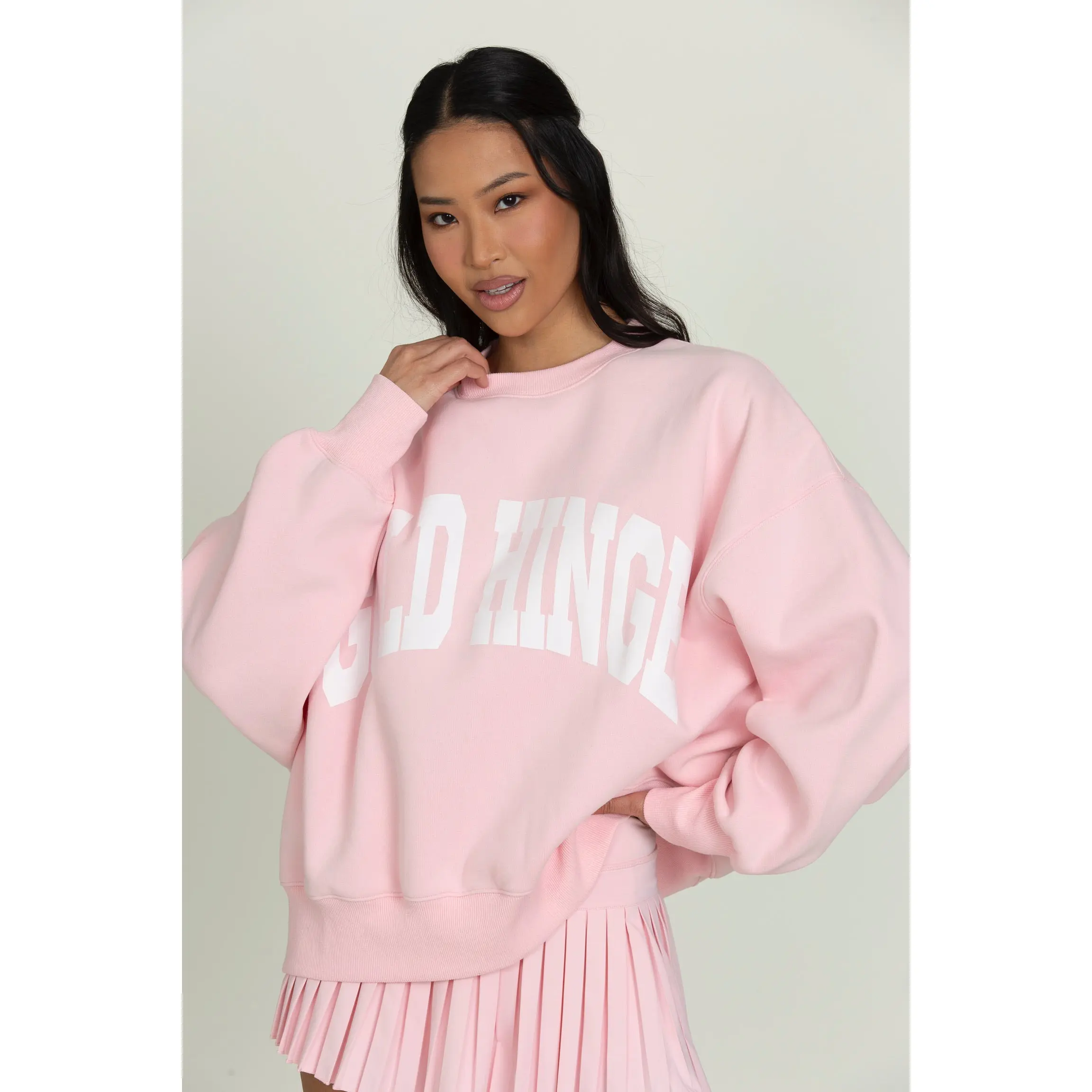 I wasn’t sure if I was going to like this because I bought it online, but I was blown away! The sweatshirt is SO soft and the light pink color is stunning! I’m 5”5 120 and a S fits perfectly oversized! please make more colors- maybe a bright blue or red?