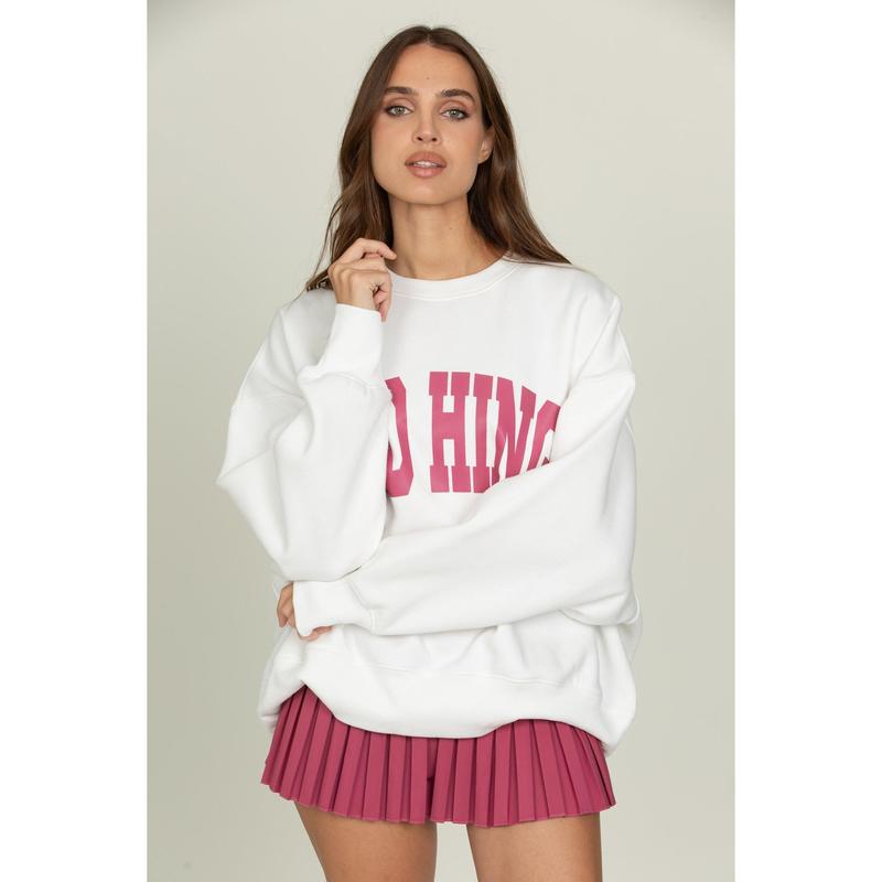 it is a bit oversized, but if you like your sweatshirts oversized you will LOVE! i am normally a small and it is oversized on me. so comfy and adorable.