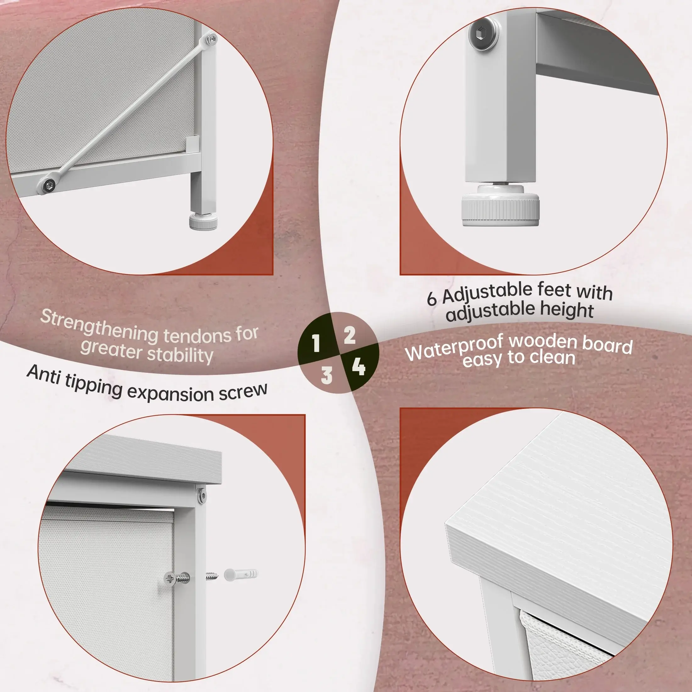 ·【Careful Details】-Strong steel frame and water-resistant wood top offer stable support and ensure years of use. Also, the storage drawer unit has anti-tipping accessories, safety and stability.