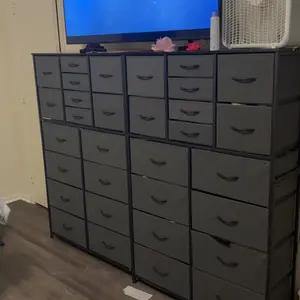 ·【Multifunctional and Versatile】-With elegant appearance and practical internal storage, this modern dresser is multi-functional and versatile. Except for being a TV stand in your home, this fabric storage cabinet also can be used as a drawer dresser in bedroom, dorm, closet, study, entryway. This high-quality storage dresser chest can not only store various items but also decorate your house.