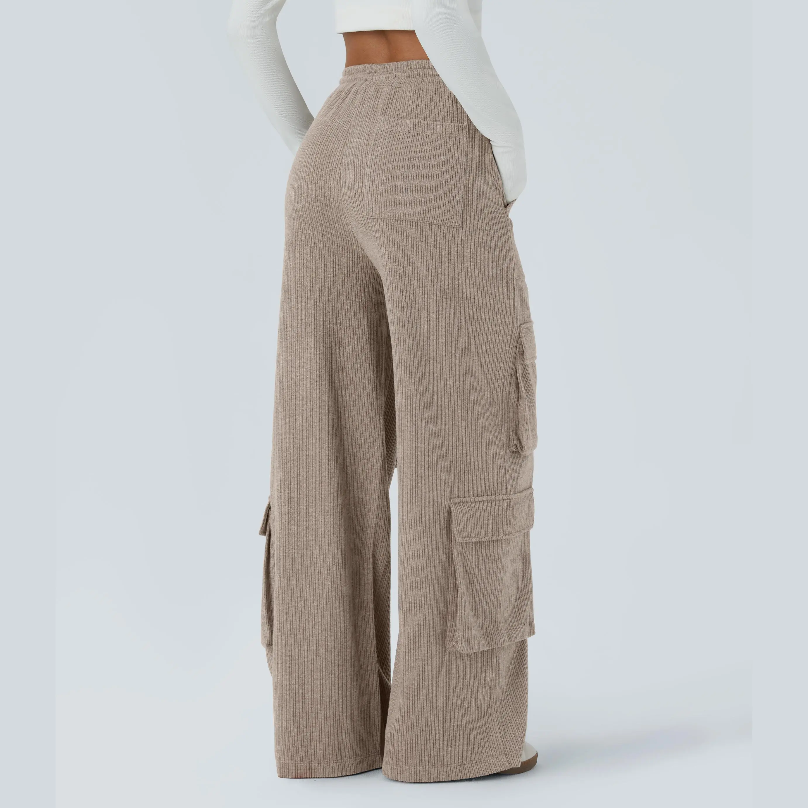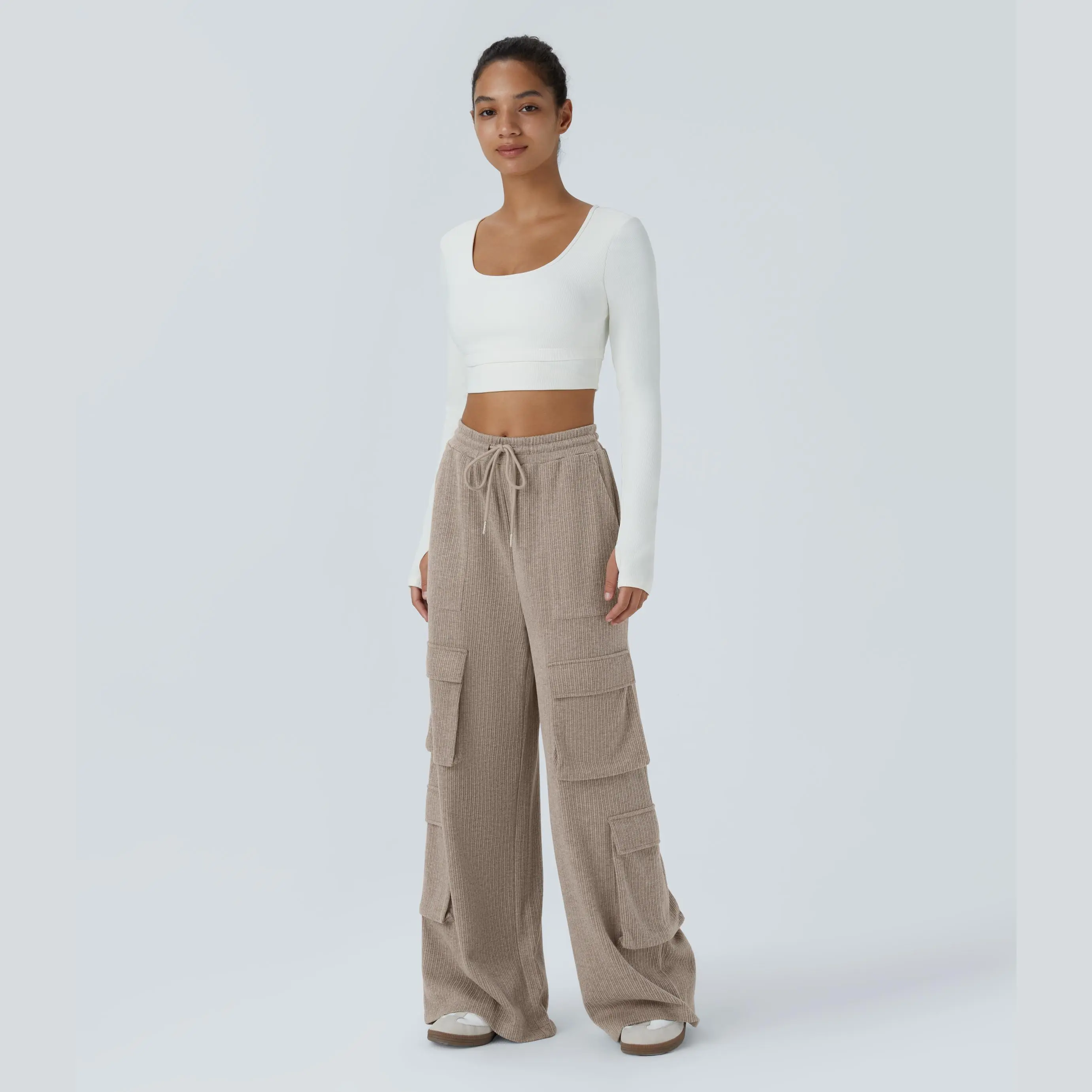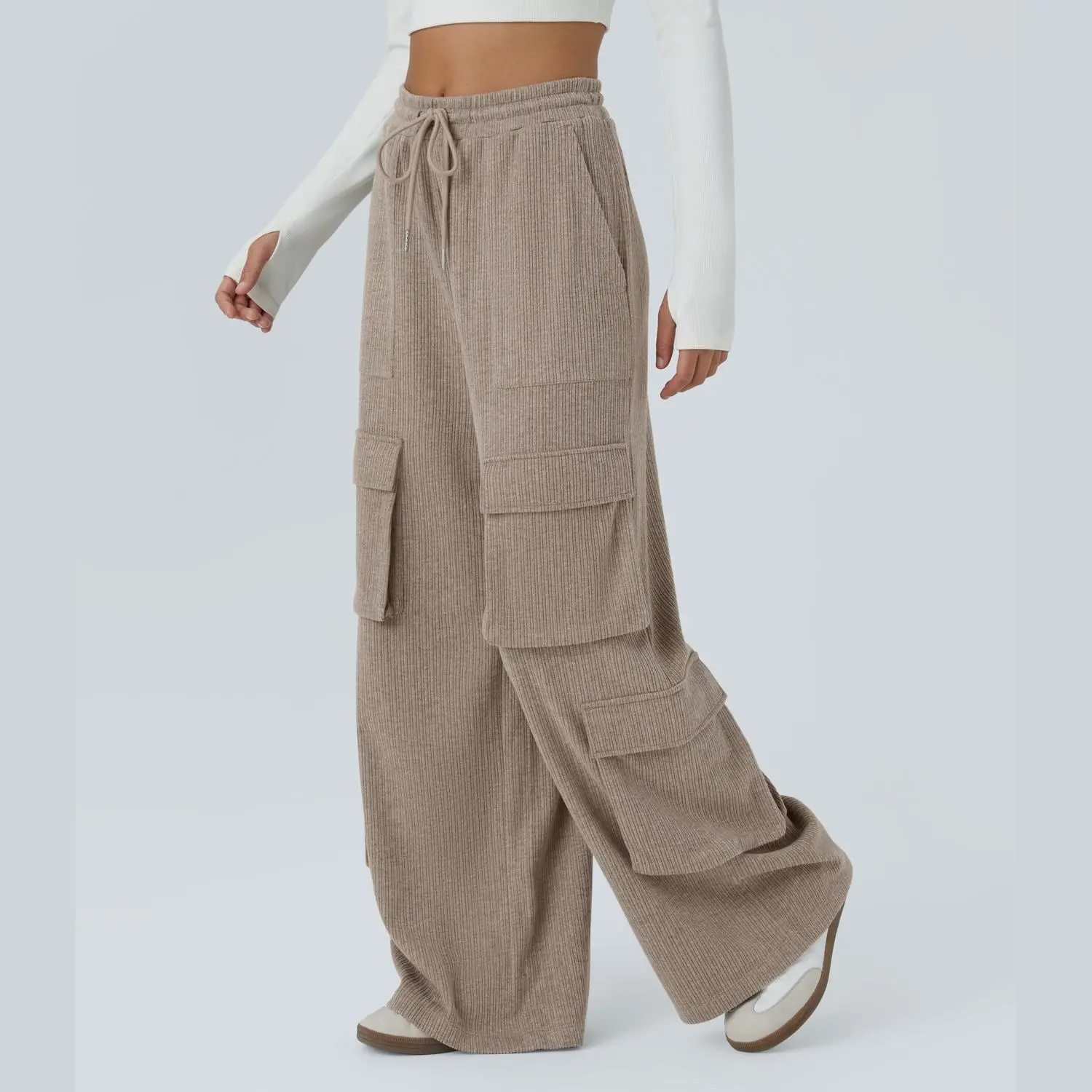 ·Features: Ribbed fabric is made for high-performance with a stylish look. Mid waist designs for easy wearability. Adjustable drawstring for a personalized fit. Elastic waistband designed for optimized comfort and feel. Multiple pockets for easy storage. Wide leg style gives a timeless look, while providing comfortable wear. Cargo pants for function and style in-one. Four-way stretch fabric offers ease of movement and durable wearability.