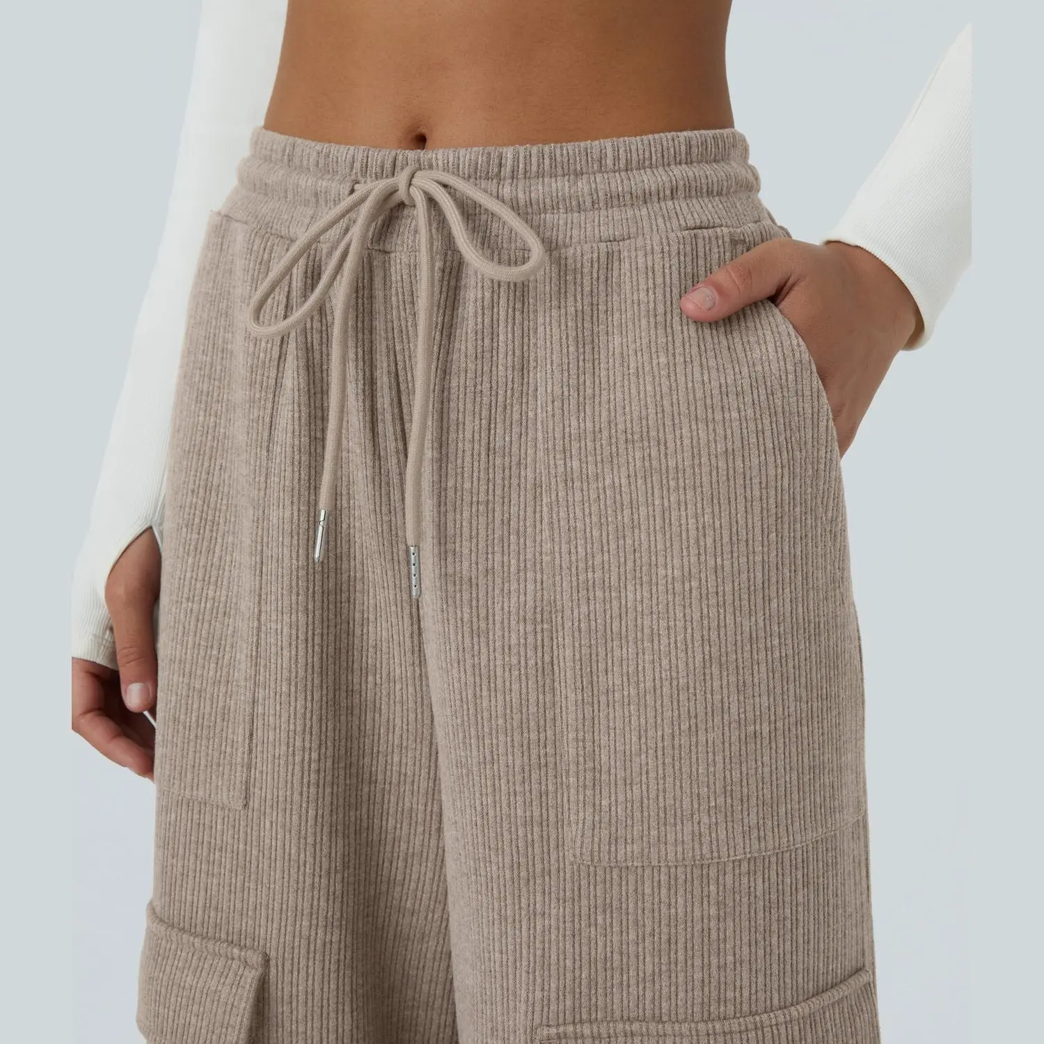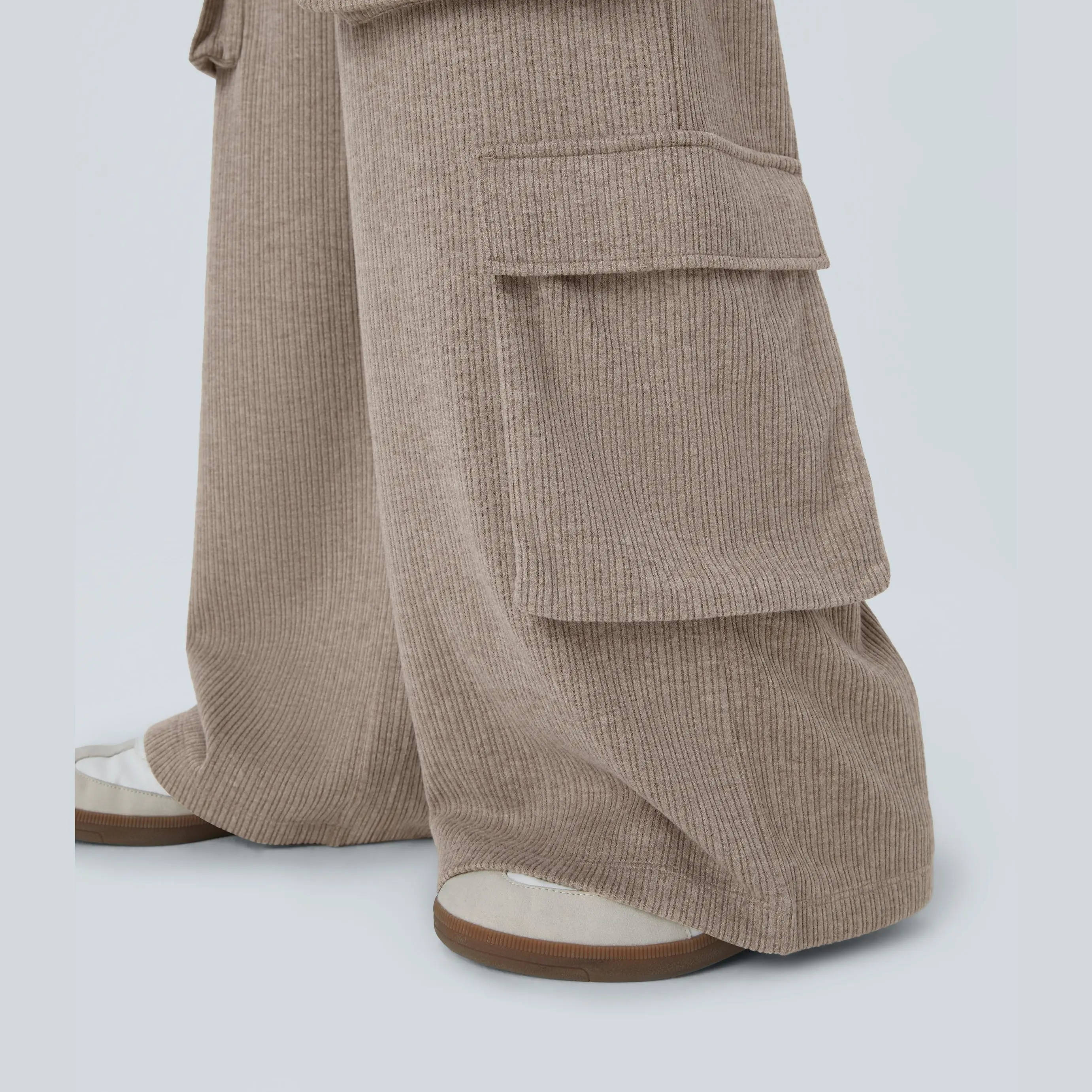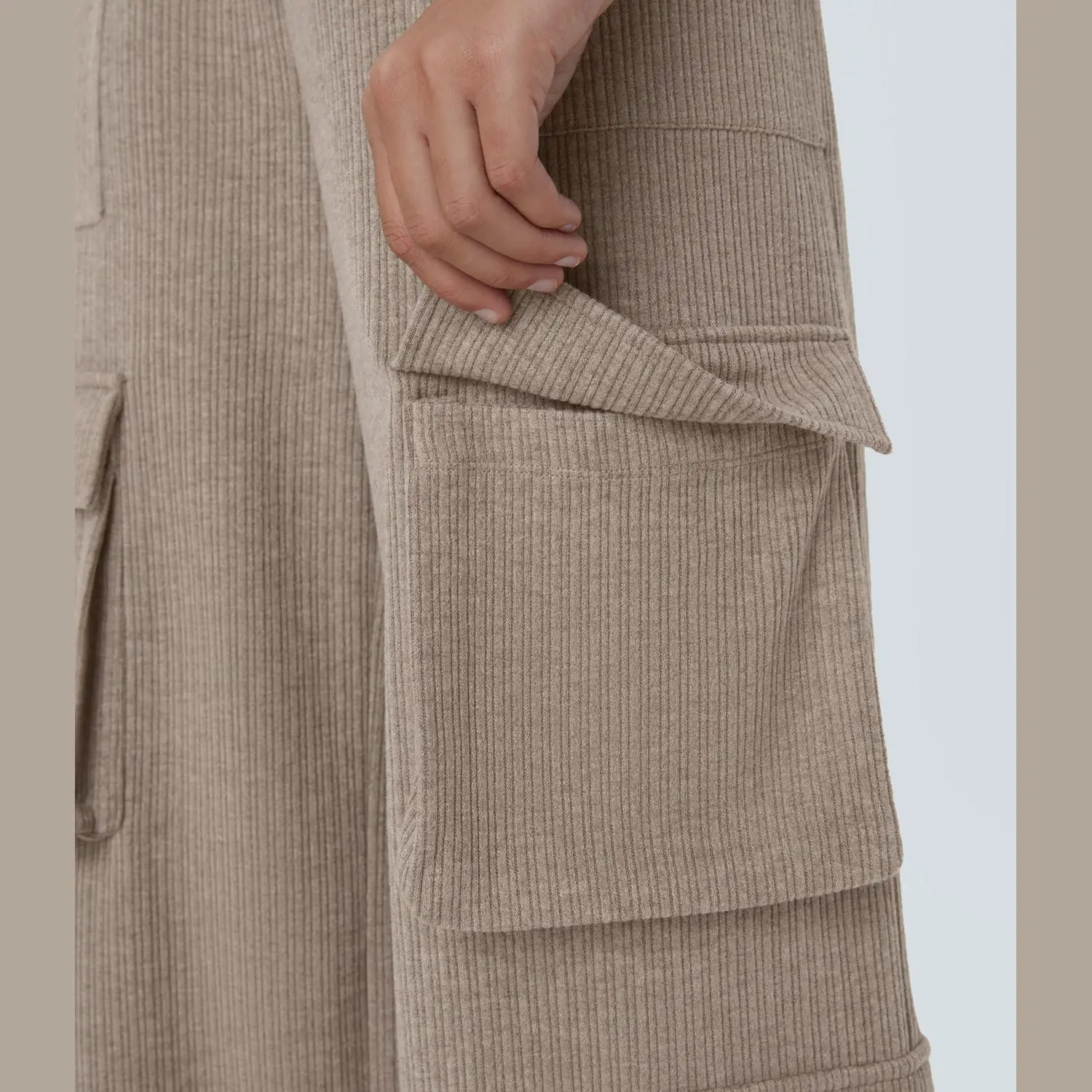 ·Features: Ribbed fabric is made for high-performance with a stylish look. Mid waist designs for easy wearability. Adjustable drawstring for a personalized fit. Elastic waistband designed for optimized comfort and feel. Multiple pockets for easy storage. Wide leg style gives a timeless look, while providing comfortable wear. Cargo pants for function and style in-one. Four-way stretch fabric offers ease of movement and durable wearability.