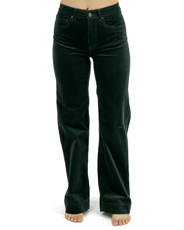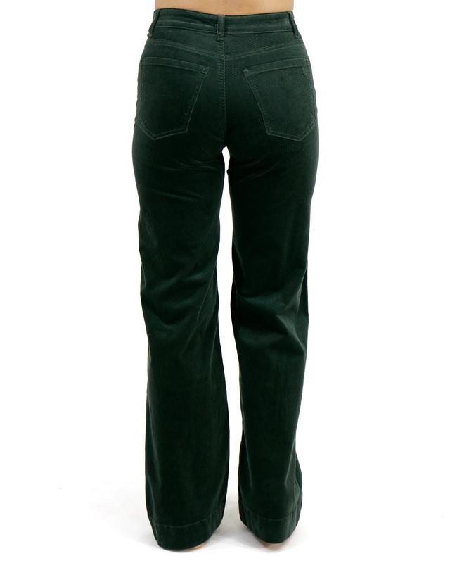 ·Wide leg corduroy pants in deep green with flattering higher mid-rise