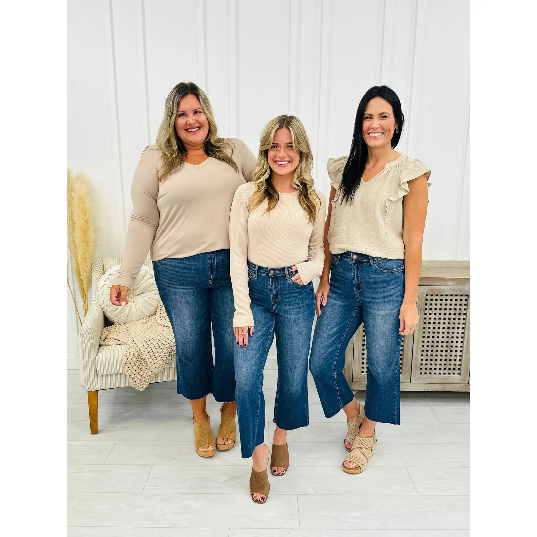 ·(1) WIDE LEG CROP. Wide leg crops are our best selling style of jean right now AND the most trendy style of jeans on the market! We love when comfort meets trend and these jeans are the exact definition of that combination!