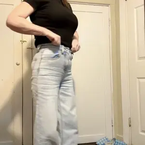 LOVE THESE!! Usually wide leg jeans are way too wide at the top & look funny on me since I’m so short! These are super stretchy so they form to your body and the PERFECT length!! I can wear these with shoes perfectly or even with heels! I’m usually a 26 inch size down to 24! 5’2 110lb reference