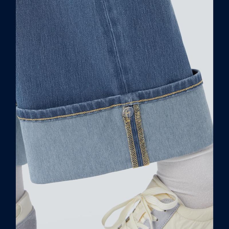 ·Features: High waist design that offers support & comfort, without sacrificing on style. Multiple pockets for easy storage. Adjustable rolled hem for easy customization and comfortable wear. Wide leg style gives a timeless look, while providing comfortable wear. Washed-out designs for a casual yet edgy look. Denim gives you stylish comfort in a jean-textured look. Four-way stretch fabric offers ease of movement and durable wearability.