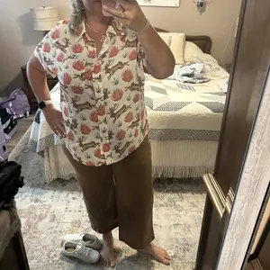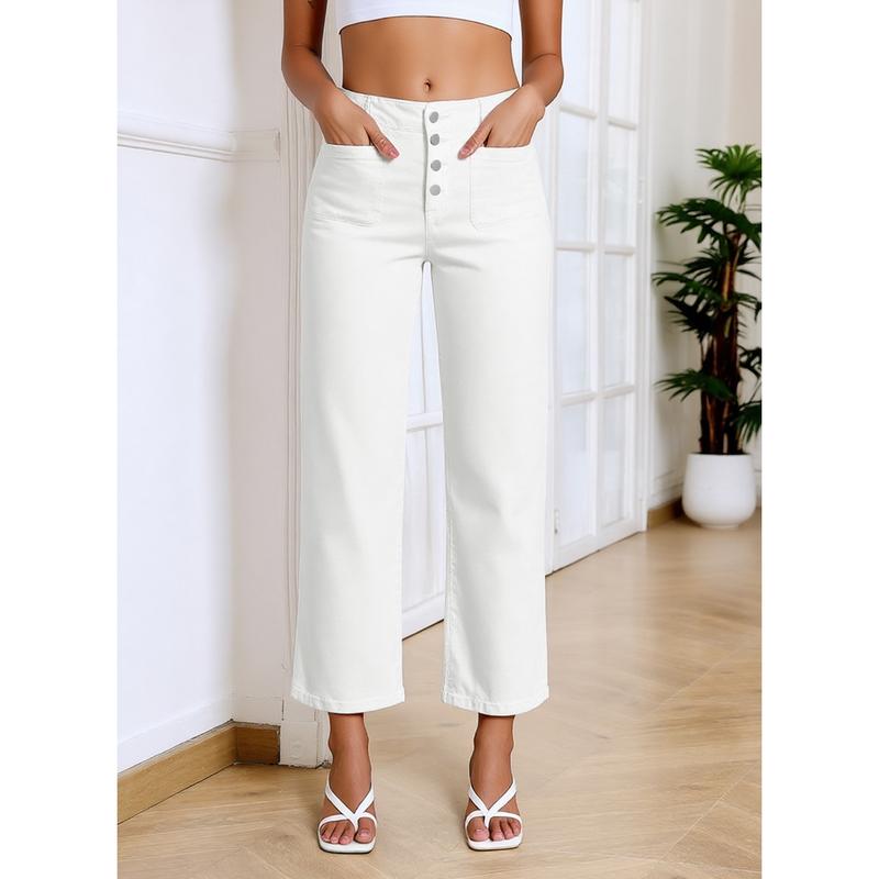 These are super cute, a lot more expensive than I would prefer to pay. But even with tariffs, I went for it anyway. I got the medium size 8, I'm a thick 150 lbs, 5'2 tall and the size 8 fit me perfectly. but I suggest going up to the large if you're any more than 150. These are stretchy, wide leg capri length jeans Nice quality and a great summer fit. They are a very nice quality and I really like them. I totally would recommend them for anyone interested.