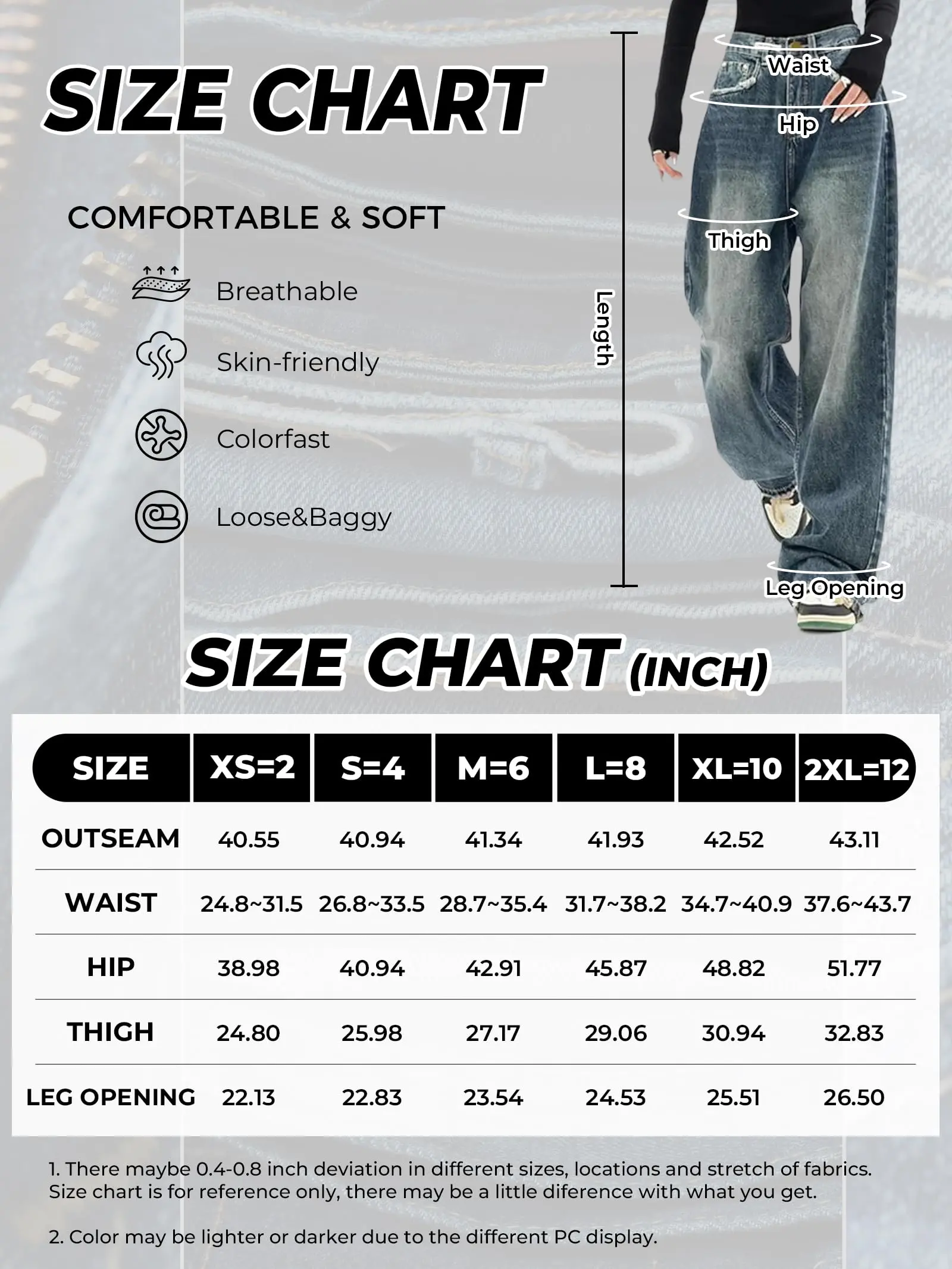 In theory - I could have actually gotten an XL and been fine XD, but I LOVE extra baggy jeans so they're PERFECT!!!