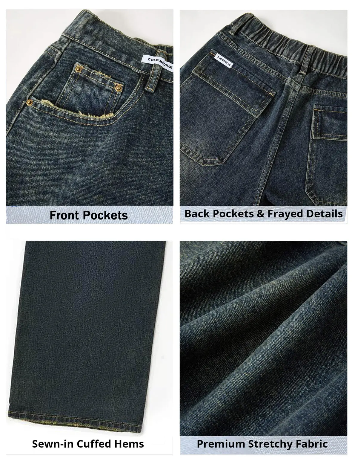 Jeans didn’t come as the color shown, these look like black and not blue like I picked, crotch is lower than expected. Returning has them keep $14