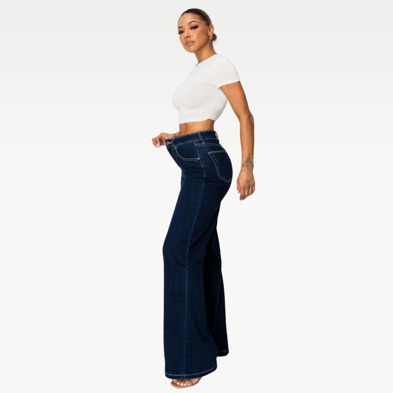 I’m so impressed with these. The comfort is the level of WAY more expensive jeans. SO stretchy and so flattering for a wide leg jean. They’re fitted just enough across the butt and hips to be flattering, and then flow into a wide leg jean so smoothly to hit that trendy vibe. I’m 5’9” and theyre perf