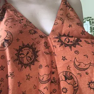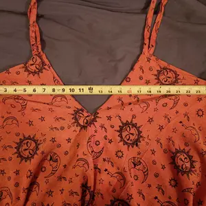 Really REALLY wanted to like this. The fabric and print are SO beautiful. But the ties just keep slipping off my shoulders... Just walking from my bedroom to my bathroom. Maybe the measurements could be adjusted or come w/adjustable straps?