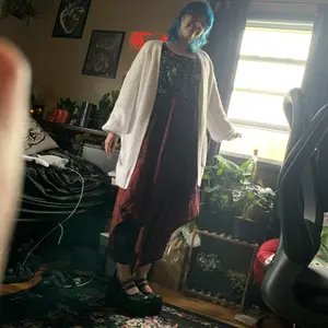 I am obsessed, I have styled this so many different ways and each way is perfect. I ordered another in a different color. I am begging you to make this style one piece in plain colors. BEGGING. I WILL GIVE YOU MY LIFE. Picture courtesy of my 11 year old. Worn with a corset and cardigan!