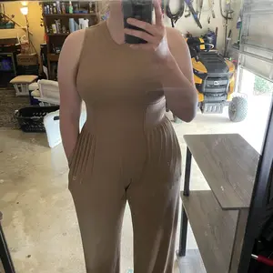 I’m normally an XL in everything and all rompers make me look 4 months pregnant BUT this one is actually SO flattering. I got a 1x to ensure there was plenty of room and there is! It is so comfortable, pants are a bit long, I’m 5’6. I got a lot of compliments at work!