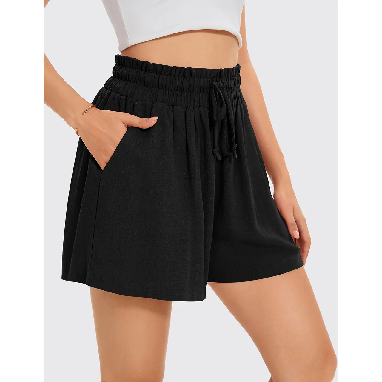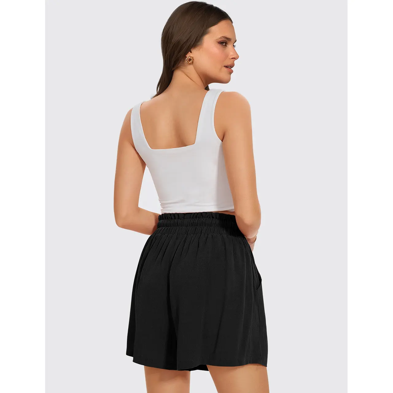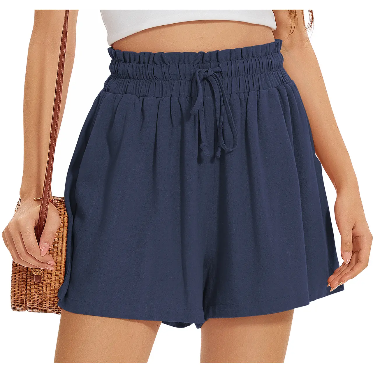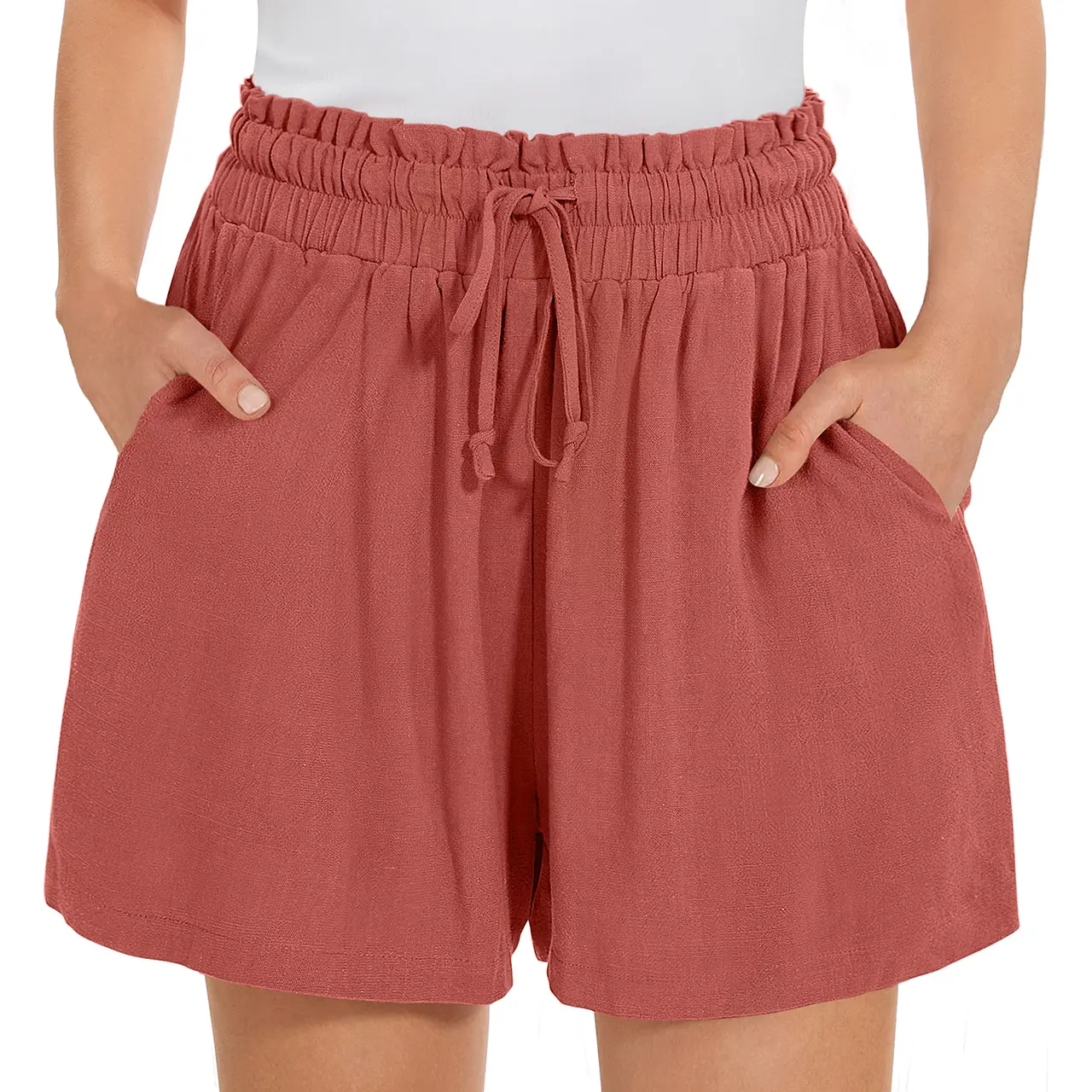 Lightweight casual shorts for women, takes our most-loved beach and summer collections and unites them, feature a high waist, wide leg silhouette, and a convenient drawstring closure with elastic waistband, and the shortd length and functional pockets add practicality to these pants, making them perfect for everyday wear.