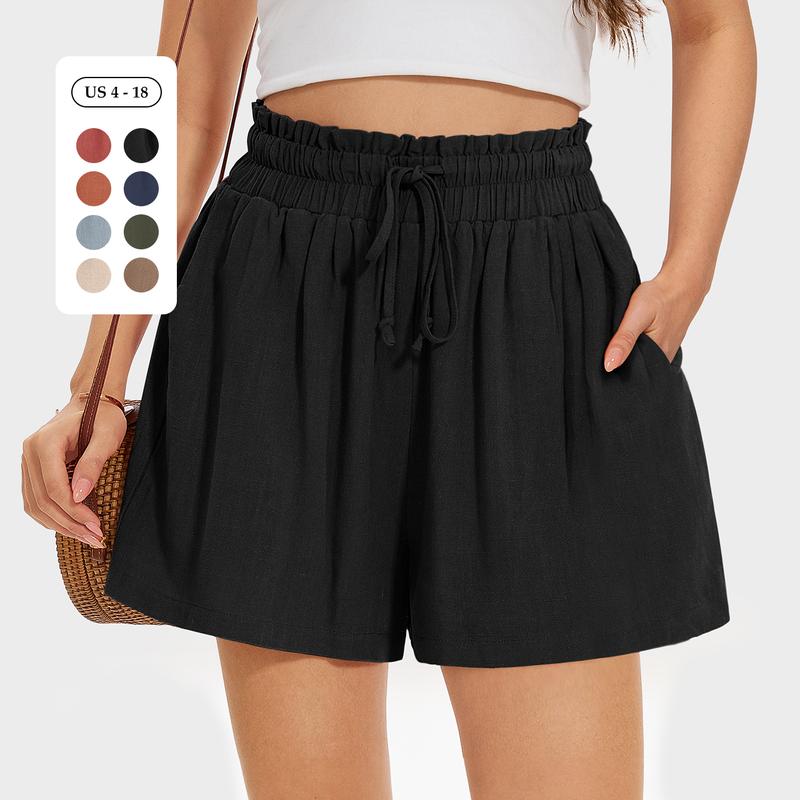 Wide leg beach shorts made from 30% Linen, 70% Rayon. The linen fabric feels soft against your skin, comfortable and skin-friendly, lightweight and breathable.