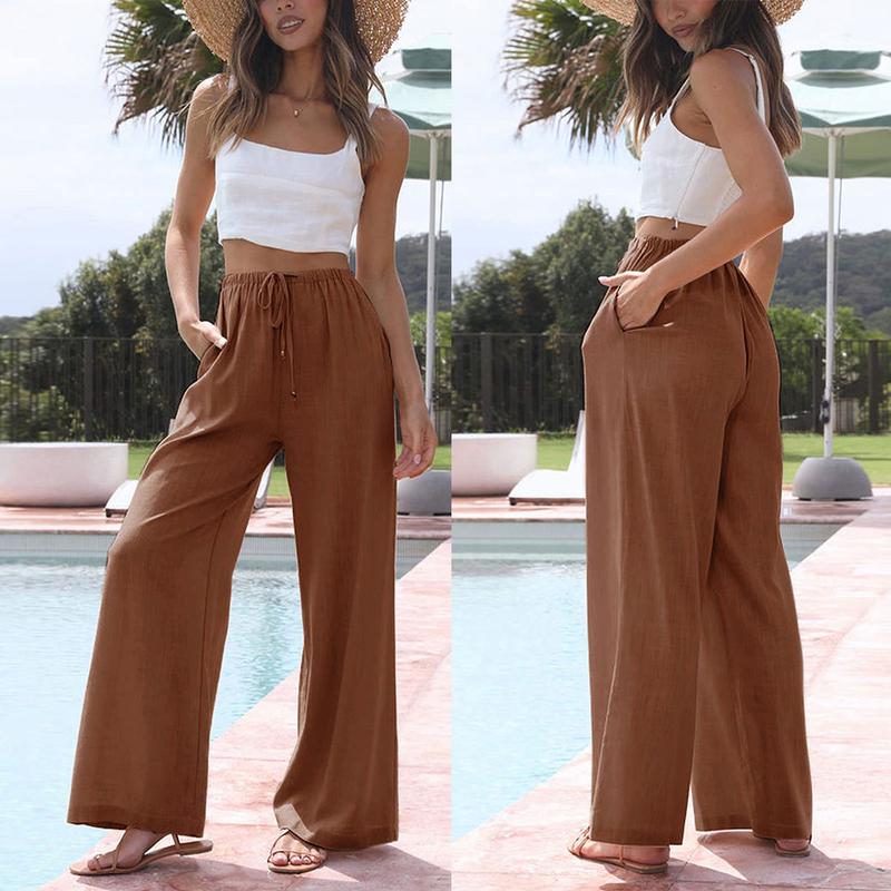 Our linen pants with pockets are perfect for any occasion! Wear them around the house or out running errands. Pair with a beach bag, boho hat, slipper, or simple tee - great for new moms!