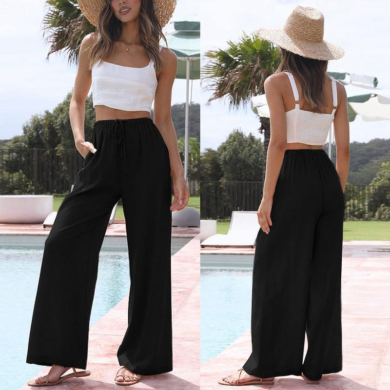 Black flowy linen pants suitable for casual daily, beach, vacation, dating, home lounge wear, resort wear, simple but fashion
