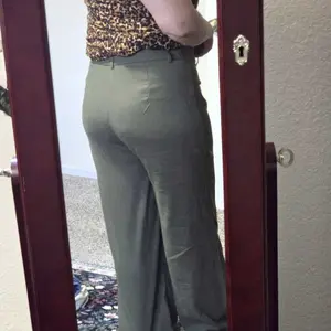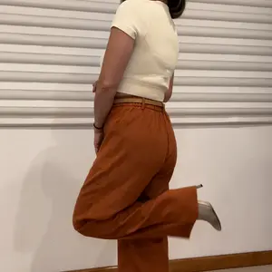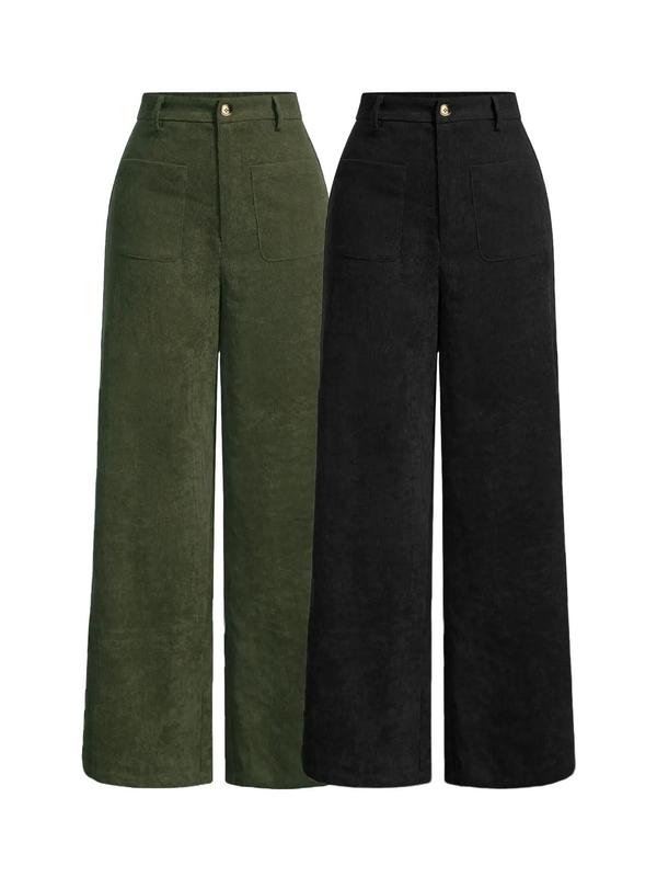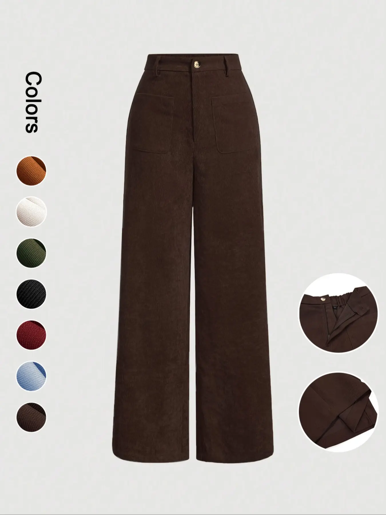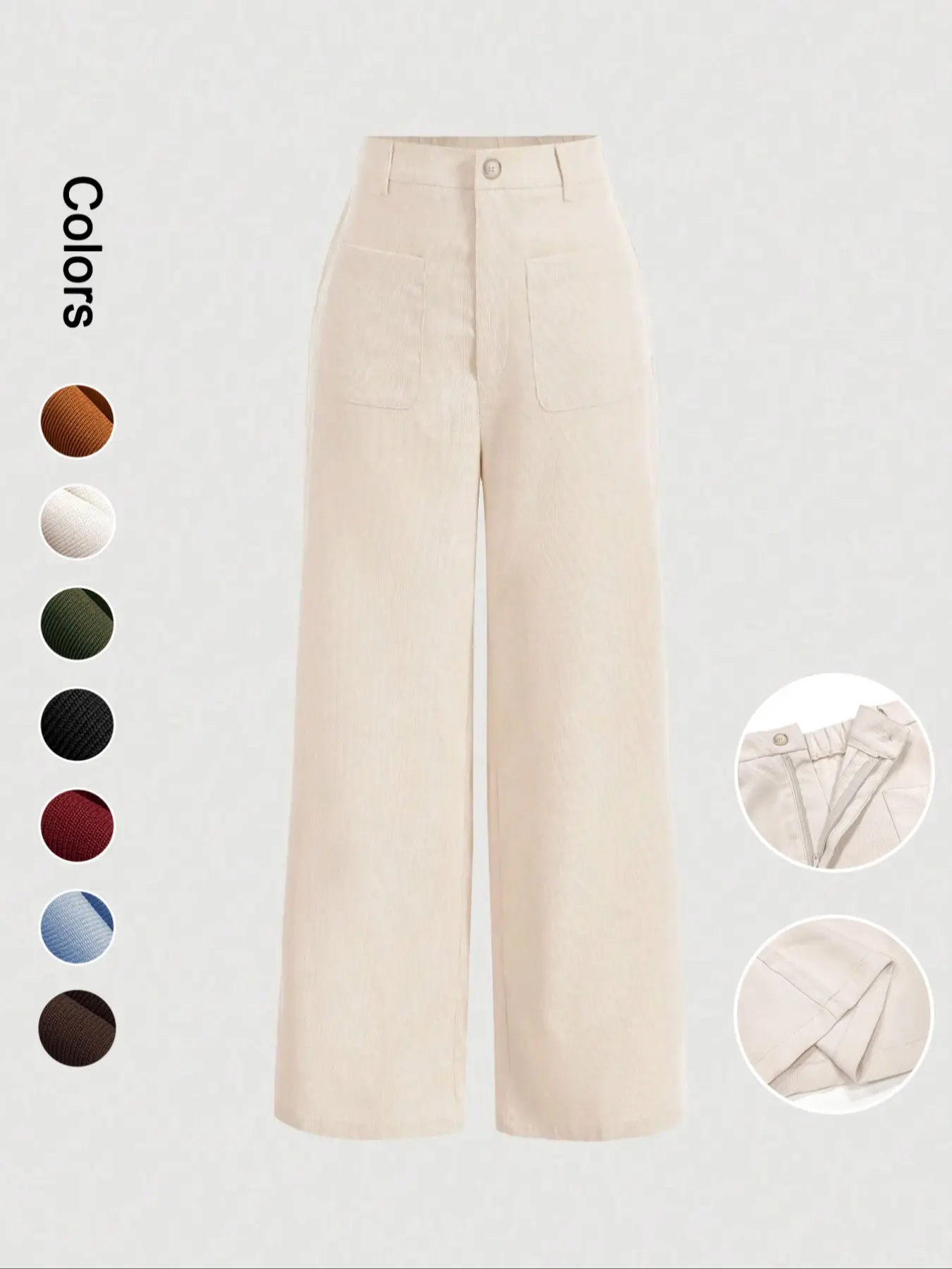 These women’s plain button-up wide-leg pants are really cute and well made. I could’ve gone down a size, though. They have a corduroy look that gives the illusion of warmth, but the fabric is thinner than expected. Definitely layer up if you wear them in the winter!