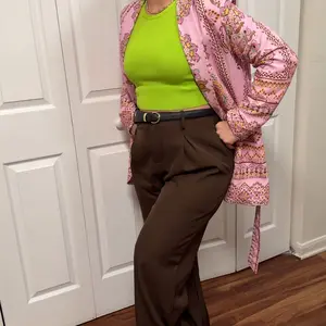Me encanto el estilo de este pantalon para los dos colored brown y beige y como me quedo. Quedo Perfecto ni muy grande ni muy apretado. El largo me callo bien ya que soy 5ā3 .La real es buena y cae elegante y casual si los usas con sneakers . Love the style of this pants neither too tide or loose.