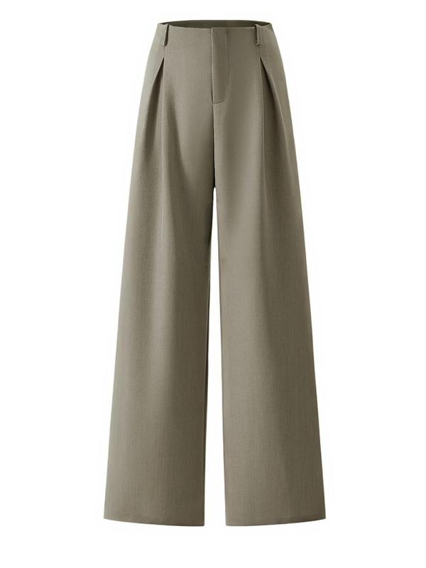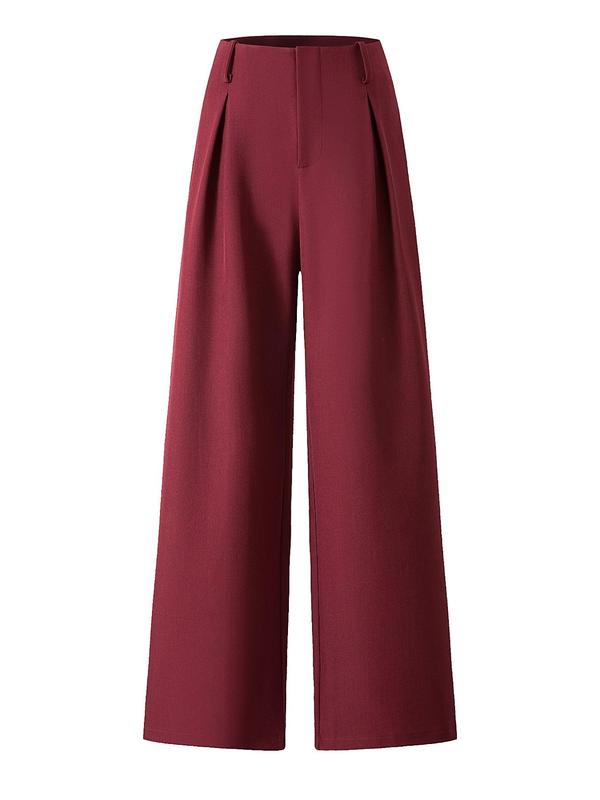 Women's Solid Color Plicated Pocket Wide Leg Pants, Elegant Zipper Fly Trousers for Work Office Business, Ladies Spring & Fall Clothes