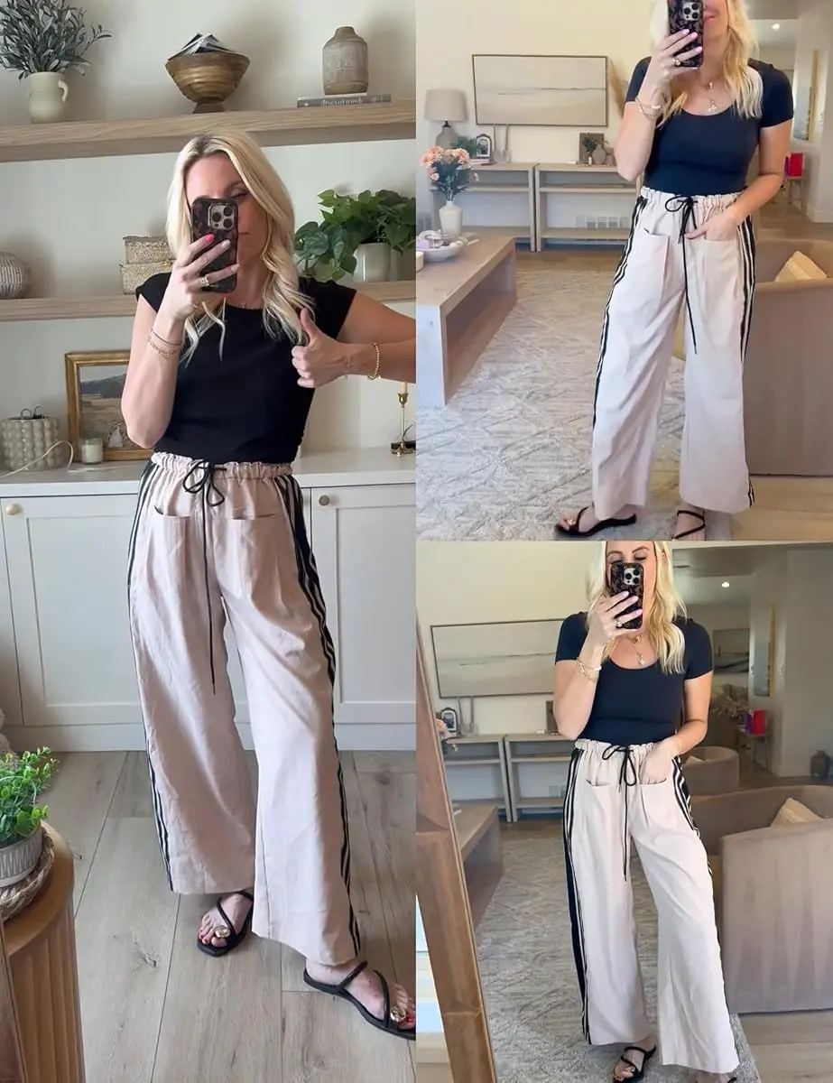 These street pants are everything. Cute, flowy, stylish, and so comfortable you forget you’re even wearing them. The lightweight material is perfect for those not‑too‑cold days when you still want to look put together. I’m obsessed… seriously love these!