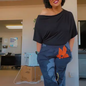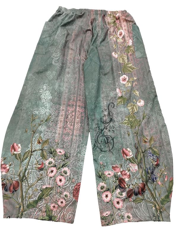 Style is great, design on pants is pretty, size is true. Love the pockets.