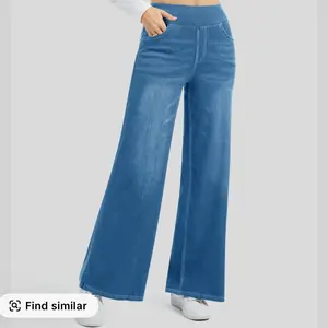 1. [Authentic Denim Look]:Our Wide Leg Jeans are made of 59% cotton, 30% polyester, and 11% spandex. The fabric looks very similar to real denim but feels as comfortable as your favorite pair of pants.
