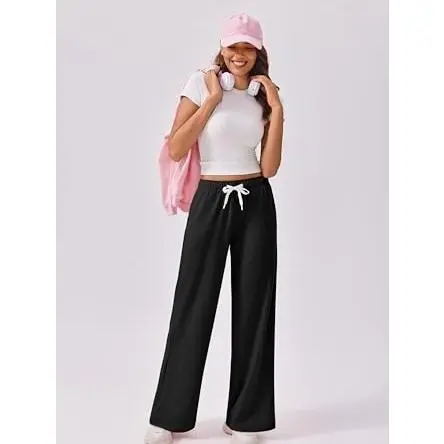 ·Trendy Wide Leg DesignPINSPARK ladies sweatpants feature a stylish wide-leg cut, offering a relaxed fit and plenty of room for movement.