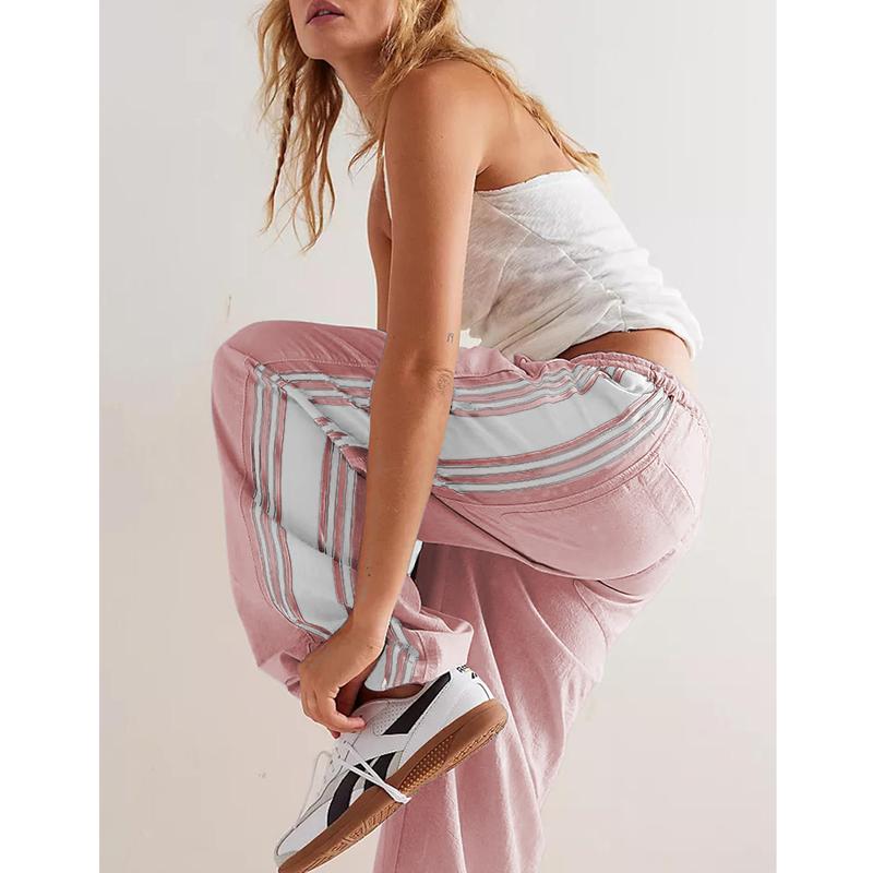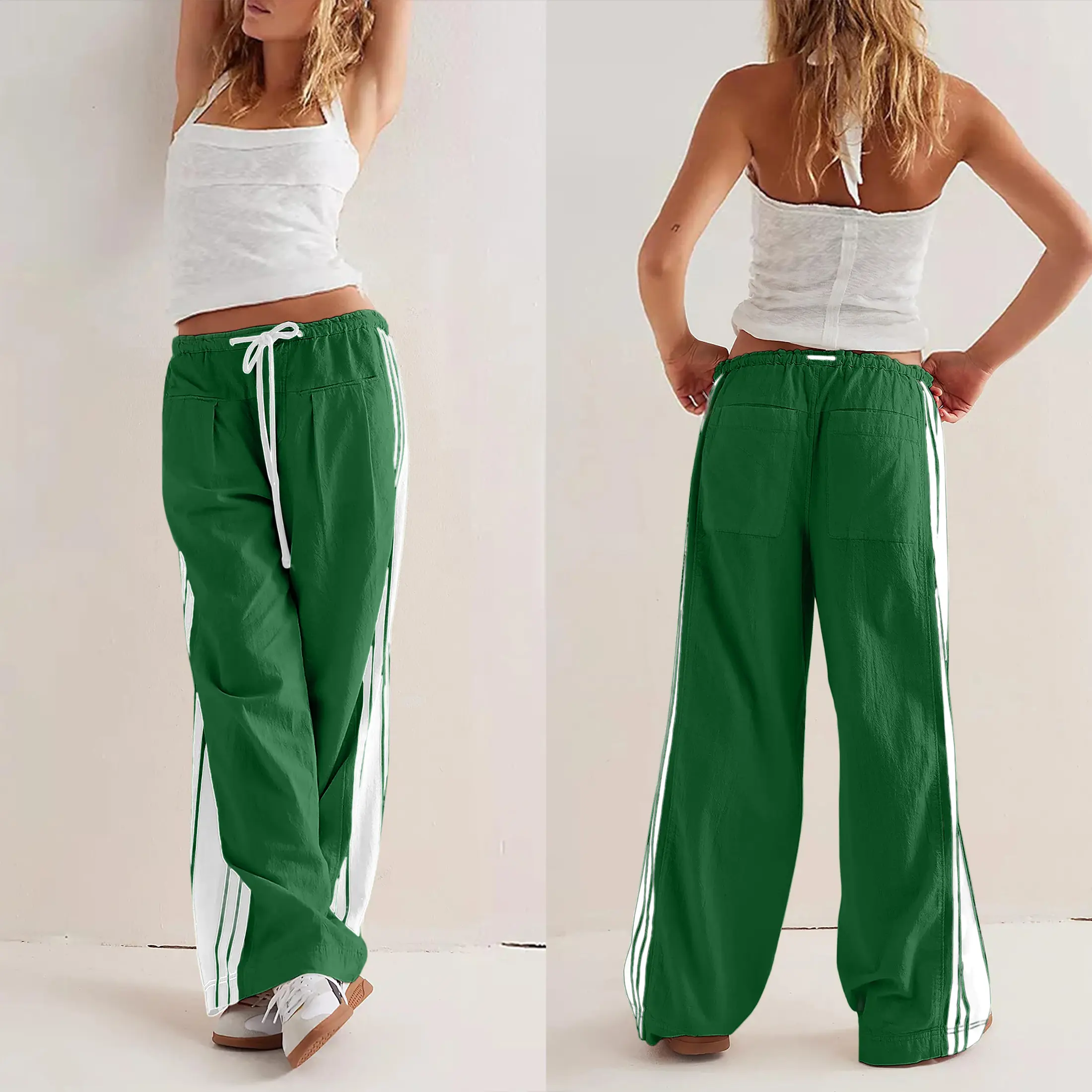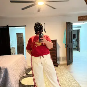 Love these pants. I got the cream with red stripe and pink with white stripe. The red stripe ones are my favorite. Very tts. Get compliments every time I wear them. No stretch to fabric but since the style is loose fit, that’s not a problem. 100% recommend!!