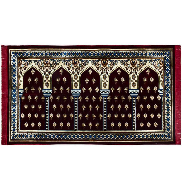 Wide 5 Person Masjid Islamic Prayer Rug - Mihrab Red