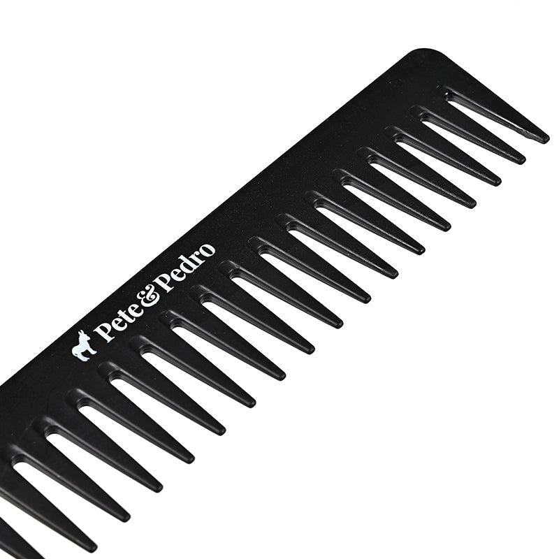 Made from anti-static material in a sleek black finish and stamped with the Pete & Pedro logo, this comb is as durable as it is stylishāready to be your go-to tool at home, in the gym bag, or on the road.
