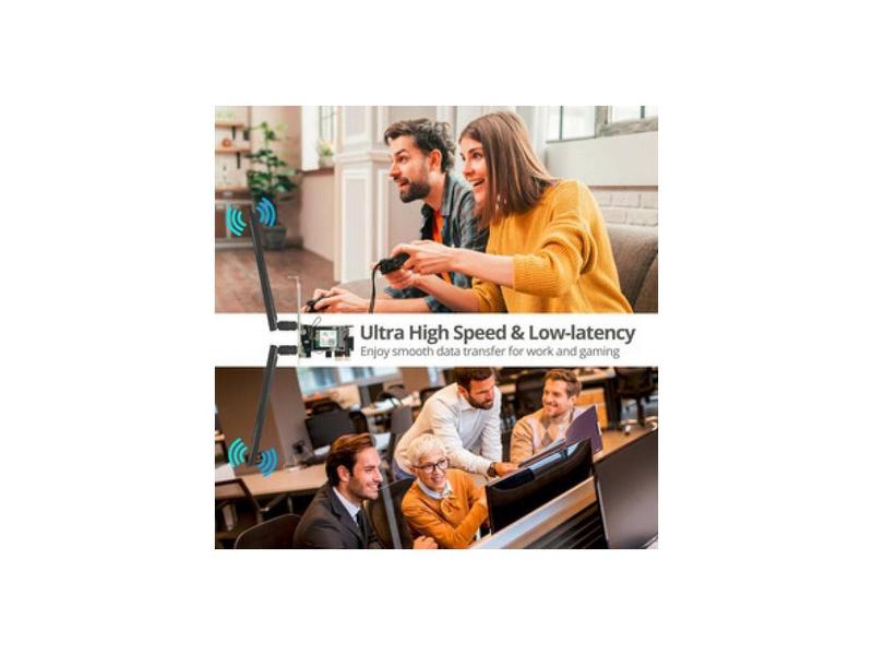 : WiFi 6 Dual Band Ethernet PCIe Card - AC3000 Full Height and Spare Low Profile Brackets USB 4-pin Cable 2 x Antenna Driver CD Quick Start