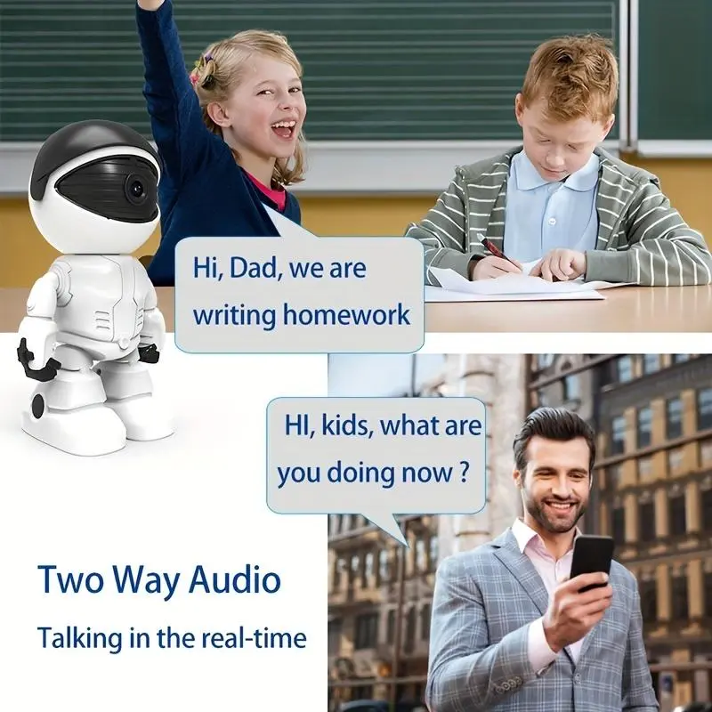 【Two-Way Audio, Voice Call Function, WIFI Connection】Monitor Robot Indoor Security Camera With a built-in 48dB microphone, speaker and anti-noise technology, our wireless home security camera can help you comfort your baby, pets and babysitter. You can talk to your baby, pet or elderly clearly at any time.