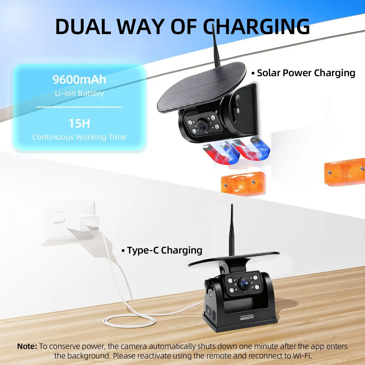 🚗 VEKOOTO MZ6 WiFi Magnetic Solar Backup Camera 🚗