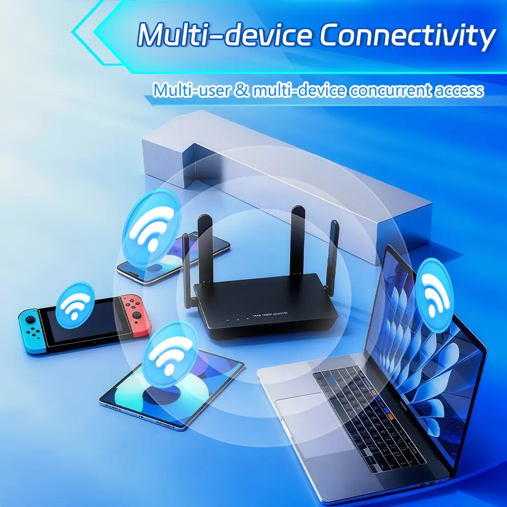 【Quad-Core Processor】Eliminates lag even during heavy data transmissions, delivering a low-latency, high-speed connection experience. Paired with four 5dBi antennas, it reduces signal dead zones and achieves extensive coverage.