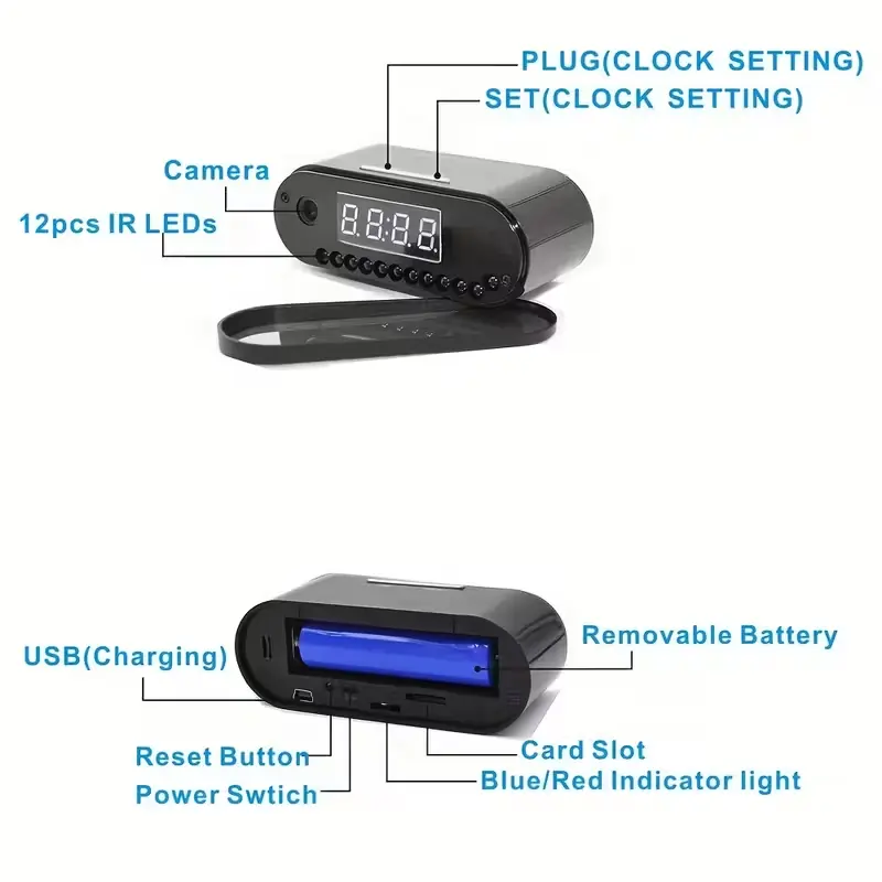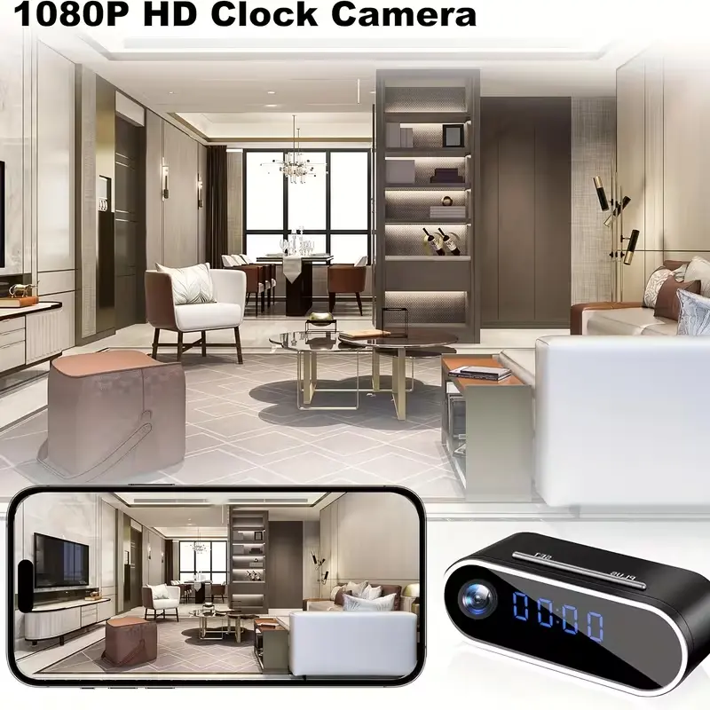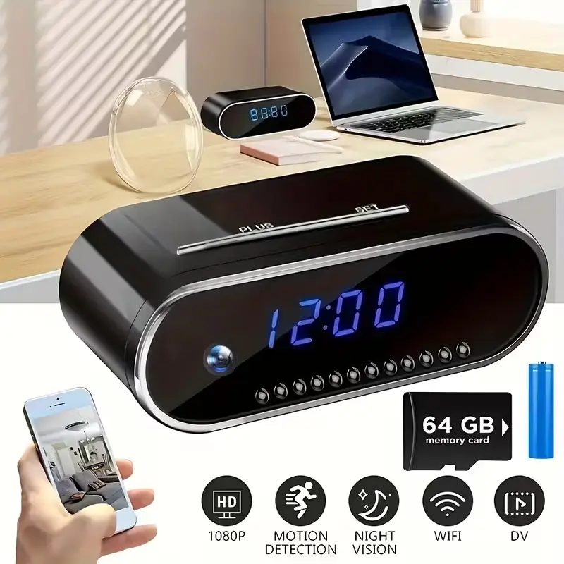 WiFi Security Camera - Wireless Camera Clock with 64GB Card, Night Vision, Motion Detection, Loop Recording, 2.4GHz WiFi Connection, Lithium Battery Powered, Remote Live Viewing, Ideal for Home, Office, Warehouse Monitoring