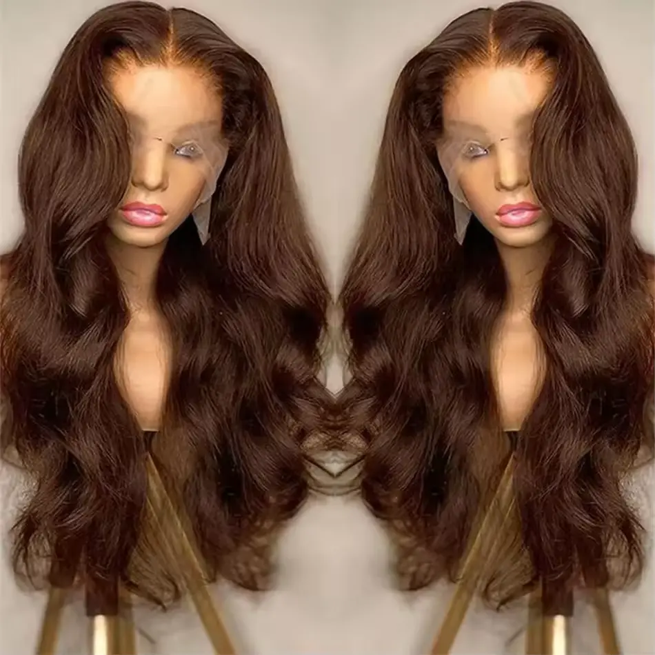 ·【4# Colored Body Wave 】4# Colored Human Hair Lace Front Wigs Is Super Popular In Autumn And Winter, Bring You More Charming And Beautiful, Make You Shine In The Crowd, Chocolate Brown Wigs, Coffee Brown Glueless Lace Front Wigs Human Hair Pre Plucked, The Latest Trendy Chocolate Brown 4# Color, Body Wave Keep Well